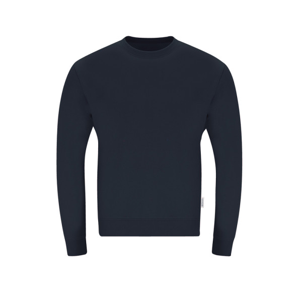 Unisex-Sweatshirt aus Bio-Baumwolle und recyceltem Polyester, aus weichem 280 g/m² Steppfleece. Mit elastischen Rippstrickbündchen an Kragen, Ärmelabschlüssen und Saum. Kragen, Ärmelabschlüsse und Saum aus geripptem Spandex-Strick.