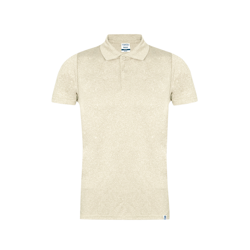 Technisches Unisex-Kurzarm-Poloshirt. Hergestellt aus 100 % recyceltem Polyestergewebe und in Melange-Effekt-Farbe. Mit einer Grammatur von 150 g/m2 ist es ein leichtes Kleidungsstück, ideal für Sport und Alltag. Sehr weicher Griff und moderner Schnitt. Zwei Ton-in-Ton-Knopfleisten. Atmungsaktiver Stoff, leicht zu waschen und schnell trocknend. Doppelnähte an Saum und Ärmeln sorgen für Langlebigkeit und Widerstandsfähigkeit bei intensiver Nutzung. Leicht ablösbares Etikett. Mit äußerem RPET-Etikett, das auf ein recyceltes Produkt hinweist. Erhältlich in den Größen XS, S, M, L, XL und XXL.