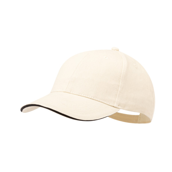 6-Panel-Kappe aus strapazierfähiger, gebürsteter Baumwolle mit 250 g/m². Mit Sandwich-Visier, gestickten Belüftungslöchern und Metallschnallenverschluss.