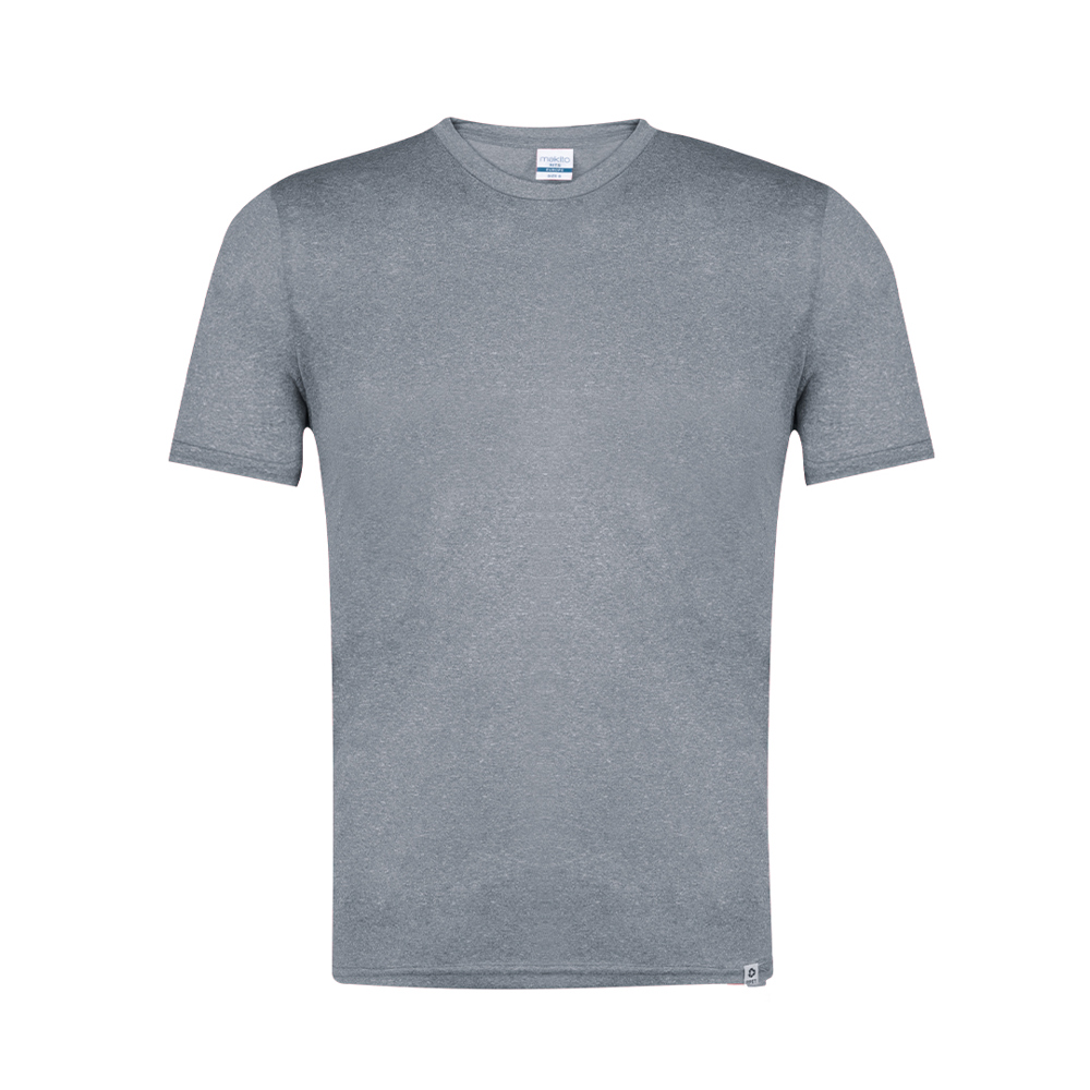 Technisches Unisex-T-Shirt. Hergestellt aus 100 % recyceltem Polyestergewebe und in Melange-Effekt-Farbe. Mit einer Grammatur von 135 g/m2 ist es ein leichtes Kleidungsstück, ideal für Sport und Alltag. Atmungsaktiver Stoff, leicht zu waschen und schnell trocknend. Sehr weicher Griff und moderner Schnitt. Enger Rundhalsausschnitt aus 2x2 Rippen. Doppelnähte an Saum und Ärmeln sorgen für Langlebigkeit und Widerstandsfähigkeit bei intensiver Nutzung. Leicht ablösbares Etikett. Mit äußerem RPET-Etikett, das auf ein recyceltes Produkt hinweist. Erhältlich in den Größen XS, S, M, L, XL und XXL.