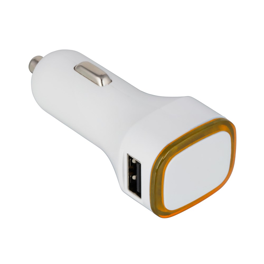 Der intelligente 2-in-1-Autoladeadapter ist für PKW und LKW anwendbar. Mit einer Ausgangsleistung bis zu DC 5V und 3.1A (bei Anschluss auf zwei Geräte verteilt sich die Leistung auf beide). Die intelligente Ladesteuerung weiß genau, wie viel Strom Ihr Gerät zum Laden benötigt. Das integrierte Schutzsystem bewahrt vor Überspannung, Überhitzung und Kurzschluss. Der umlaufende Farbring an der Werbefläche wird per LED hinterleuchtet.