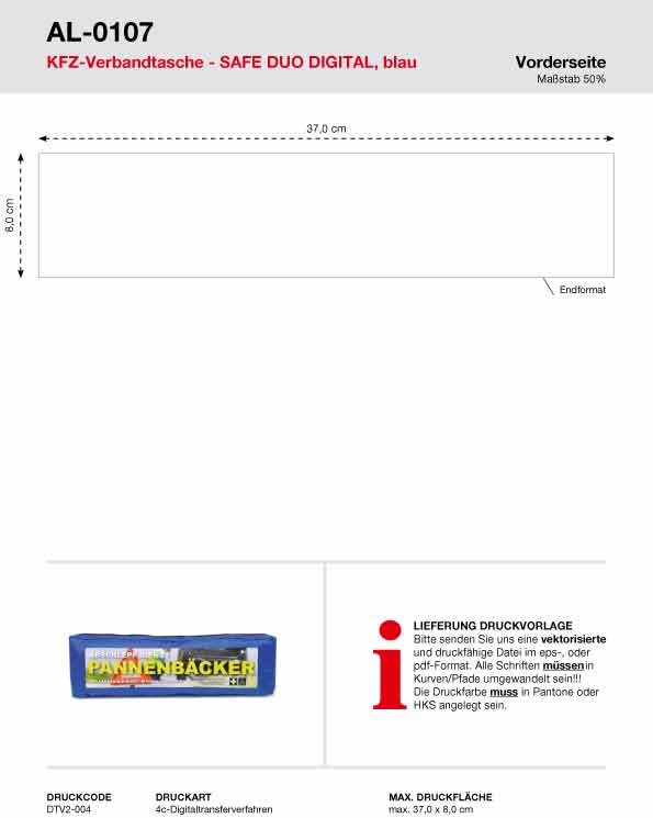 Unsere KFZ-Verbandstasche Safe Duo Digital wird mit einem 4-farbigem Digitaltransfer bedruckt.... mehr