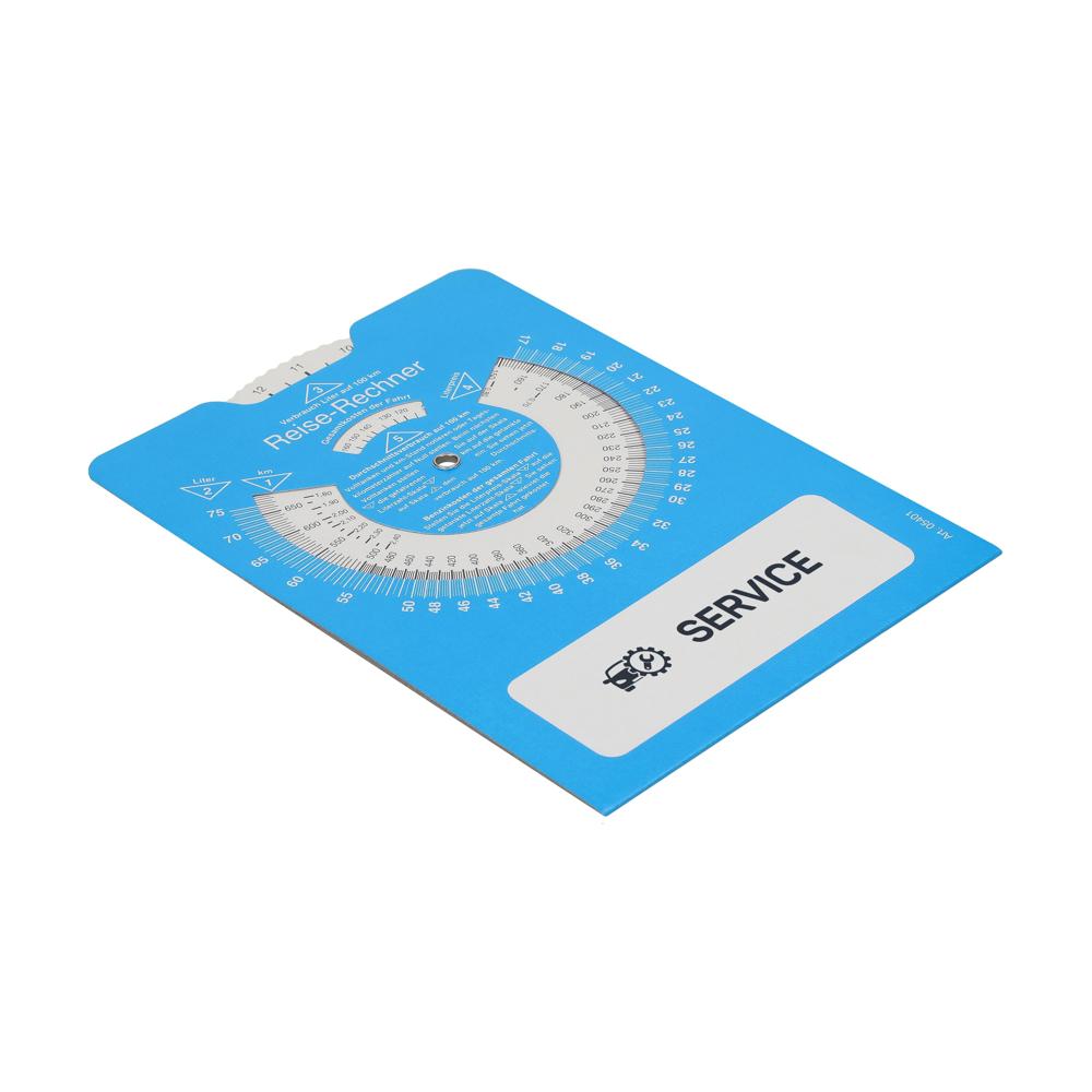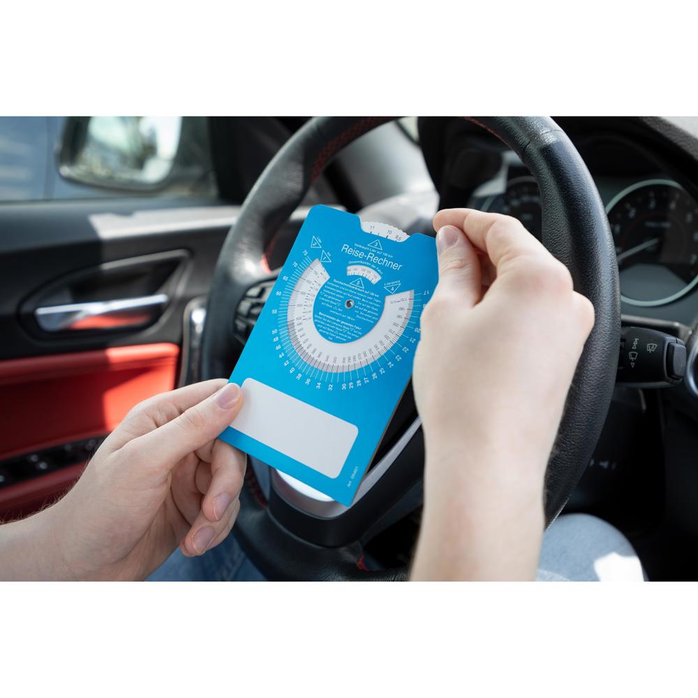 Papp-Parkscheibe "Reise-Rechner"