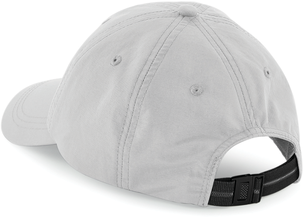 Nylon-Ripstop. Tear-away Label für einfaches Neulabeln. 6-Panel Design. Wasserfester, atmungsaktiver Stoff. Vorgeformter Schirm. 100% Polyester Coolmax® Schweißband innen. Verstellbares Gurtband und Clipverschluss.