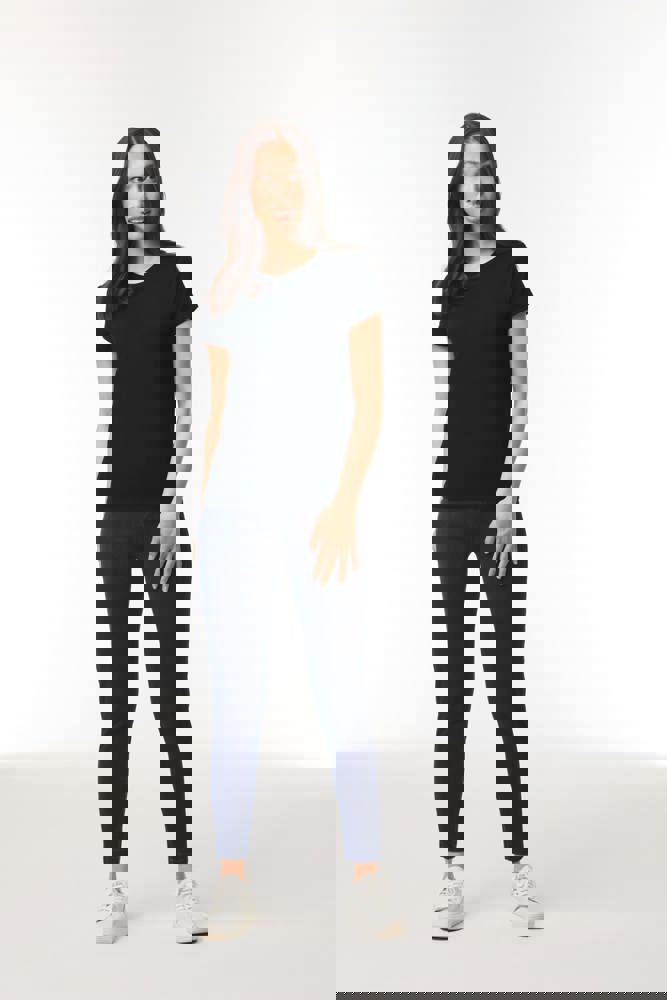 100% vorgeschrumpfte Baumwolle. Jersey (Sport Grey: 90% Baumwolle / 10% Polyester - Dark Heather: 50% Baumwolle / 50% Polyester). Rippstrickbündchen am Halsausschnitt. Schulter-zu-Schulter Nackenband. Angeschnittene Ärmel. Doppelnaht an Ärmelabschluß und Bund. Seitennähte und figurbetonter Schnitt. Doppelnaht an Ärmeln und Saum.