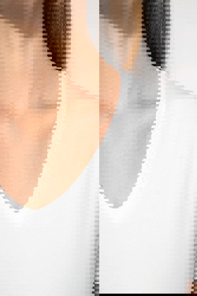 97 % Baumwolle / 3 % Elasthan. Melierte Farben 87 % Baumwolle / 9 % Viskose / 4 % Elasthan. V-Ausschnitt. Doppelnähte an Ärmelbündchen und unterem Saum. Moderner, körpernaher Schnitt im Prêt-à-porter-Stil.