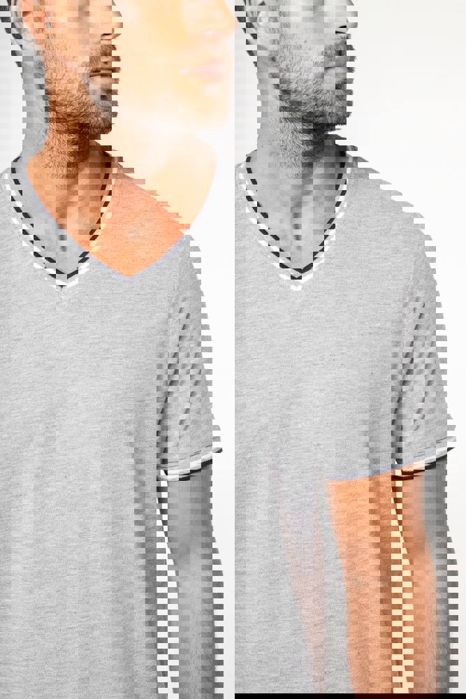 K374 - Herren T-Shirt aus Piqué-Trikot mit V-Ausschnitt