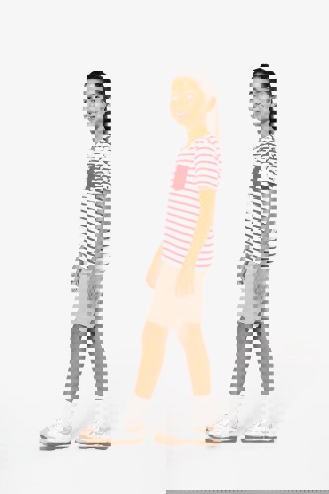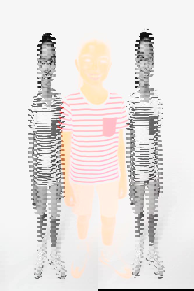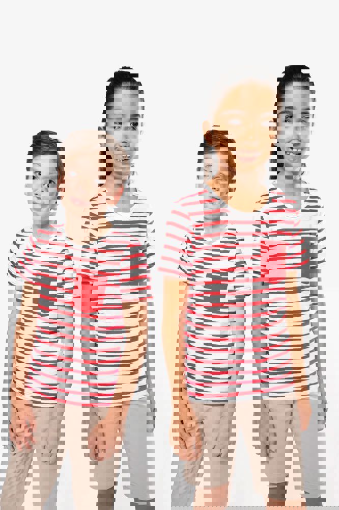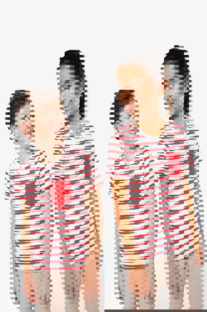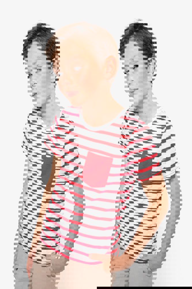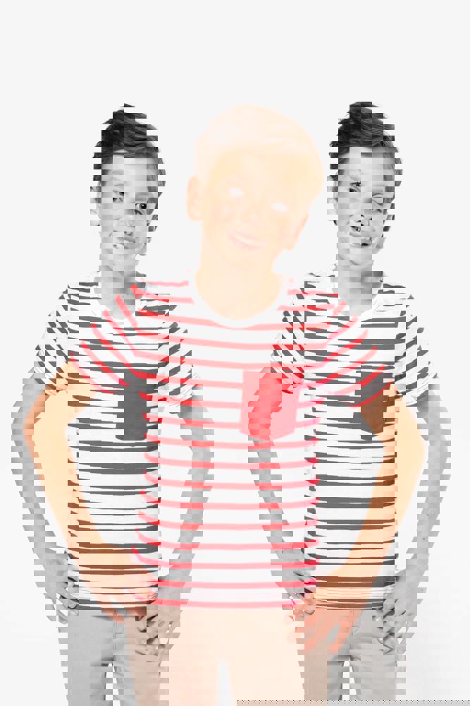 K379 - Gestreiftes Kurzarm-T-Shirt mit Tasche für Kinder im Marine-Stil