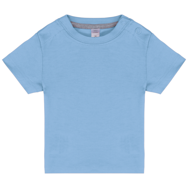 100% Baumwolle, mit Enzymen vorgewaschen. Rundhals mit 2 Druckknöpfen an der Schulter und Kontrast-Nackenband. Doppelnahtverarbeitung an Ärmeln und Hüfte.
