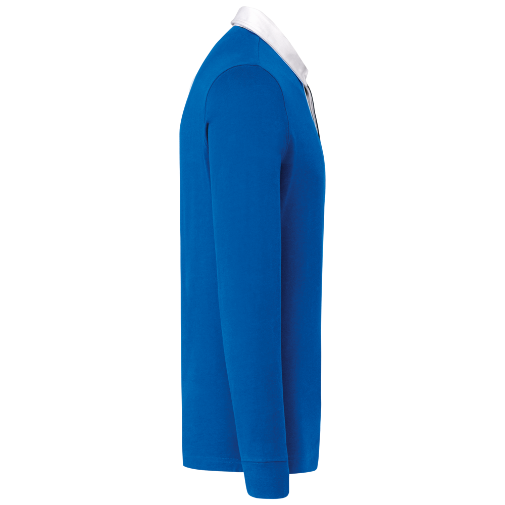 100 % Baumwolle. Jersey-Baumwolle, vorgeschrumpft u. gekämmt. Kragen aus Baumwoll-Serge in Kontrastfarbe White (Red und Dark Grey mit schwarzem Kragen). Knopfleiste mit 3 Knöpfen. Ärmelabschlüsse in Feinripp 1x1. Fischgrätnackenband und Seitenschlitze.