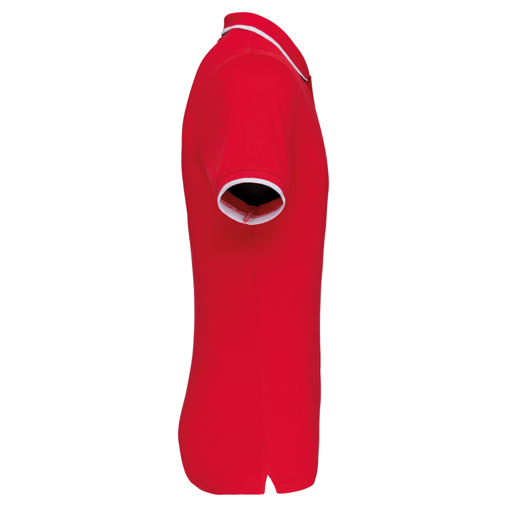 100% Baumwollpiqué. Rippstrickkragen mit Kontraststreifen ober- und unterhalb (außer White/ Navy : kein Kontrast unter dem Kragen, nur ein dünner roter Rand unter der Knopfleiste). Nackenband in Kontrastfarbe mit seitlichen Lüftungsschlitzen. Knopfleiste mit unterliegendem dreifarbigem Detail und zwei Knöpfen. Flache Bündchen mit Kontrastpaspelierung. Doppelnahtverarbeitung.