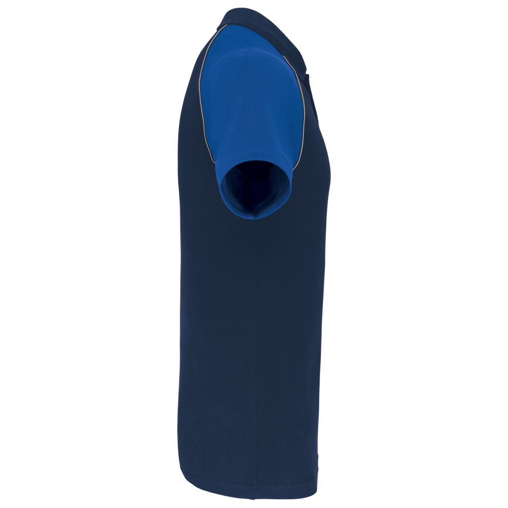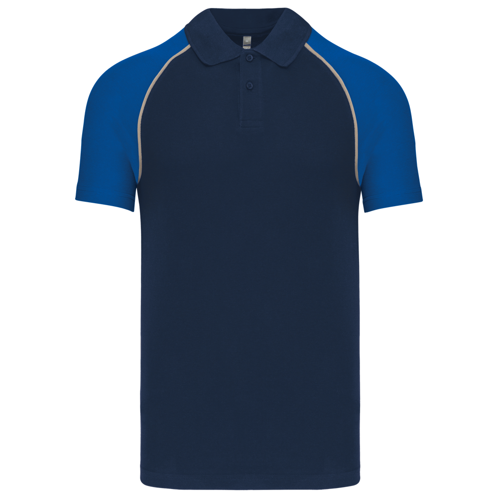 100% Baumwollpiqué. Rippstrickkragen und Nackenband. Kontrastfarbene Raglanärmel mit Ziernähten in Light Grey. 2er-Knopfleiste. Ton-in-Ton Knöpfe. Doppelnähte.
