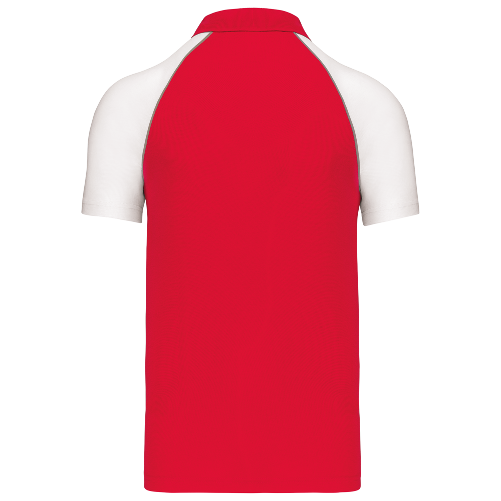 100% Baumwollpiqué. Rippstrickkragen und Nackenband. Kontrastfarbene Raglanärmel mit Ziernähten in Light Grey. 2er-Knopfleiste. Ton-in-Ton Knöpfe. Doppelnähte.