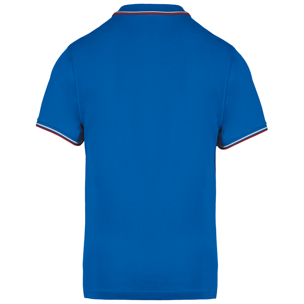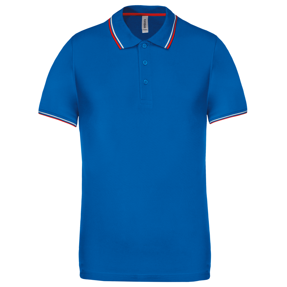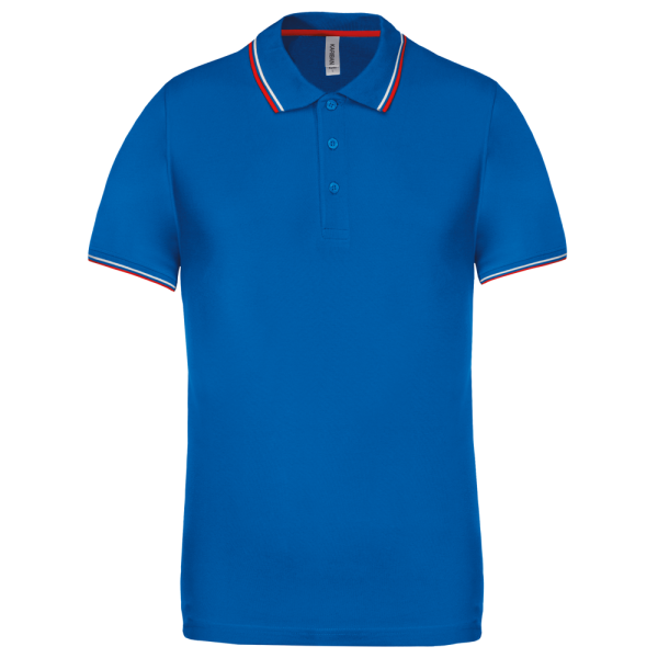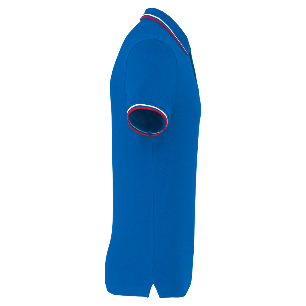100% Baumwollpiqué. Rippstrickkragen und Ärmelabschluss mit Kontraststreifen. 3-Knopfleiste. Kontrast-Nackenband. Doppelnahtsaum und Seitenschlitze.