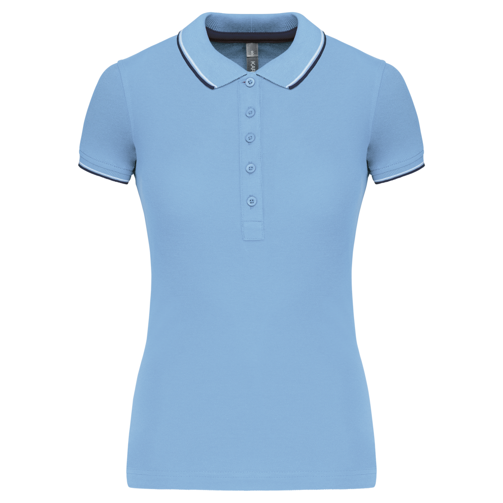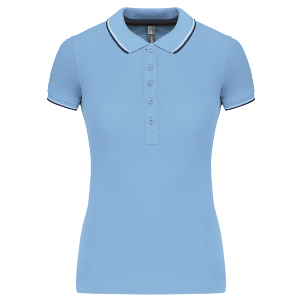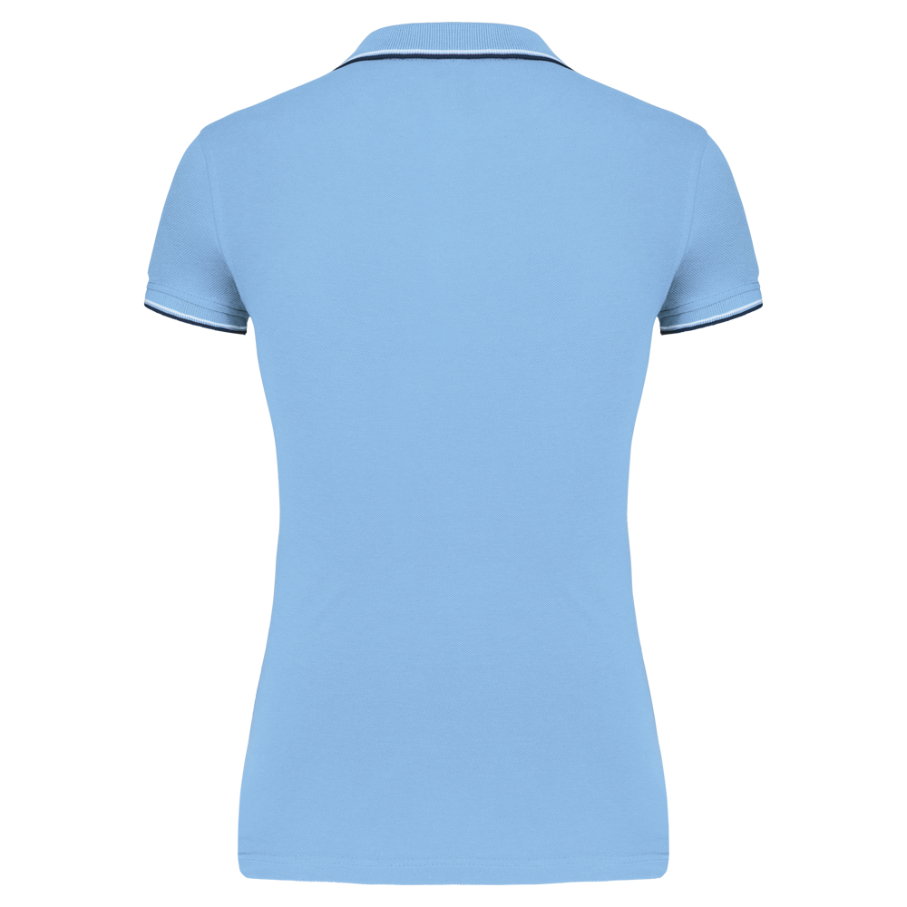 100% Baumwollpiqué. Rippstrickkragen und Ärmelabschluss mit Kontraststreifen. 5-Knopfleiste. Kontrast-Nackenband. Doppelnahtsaum und Seitenschlitze.