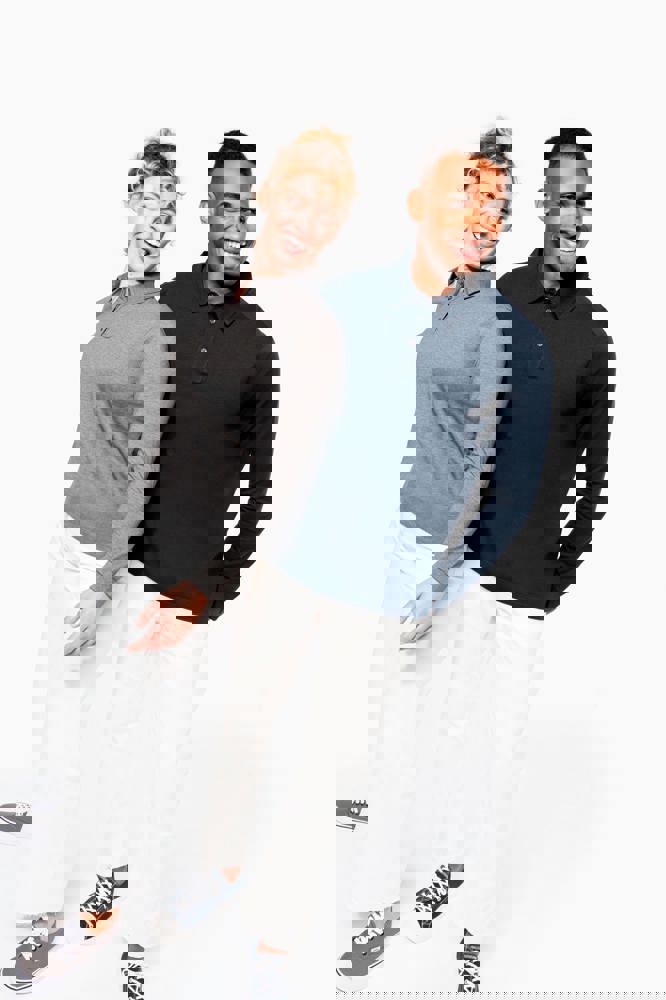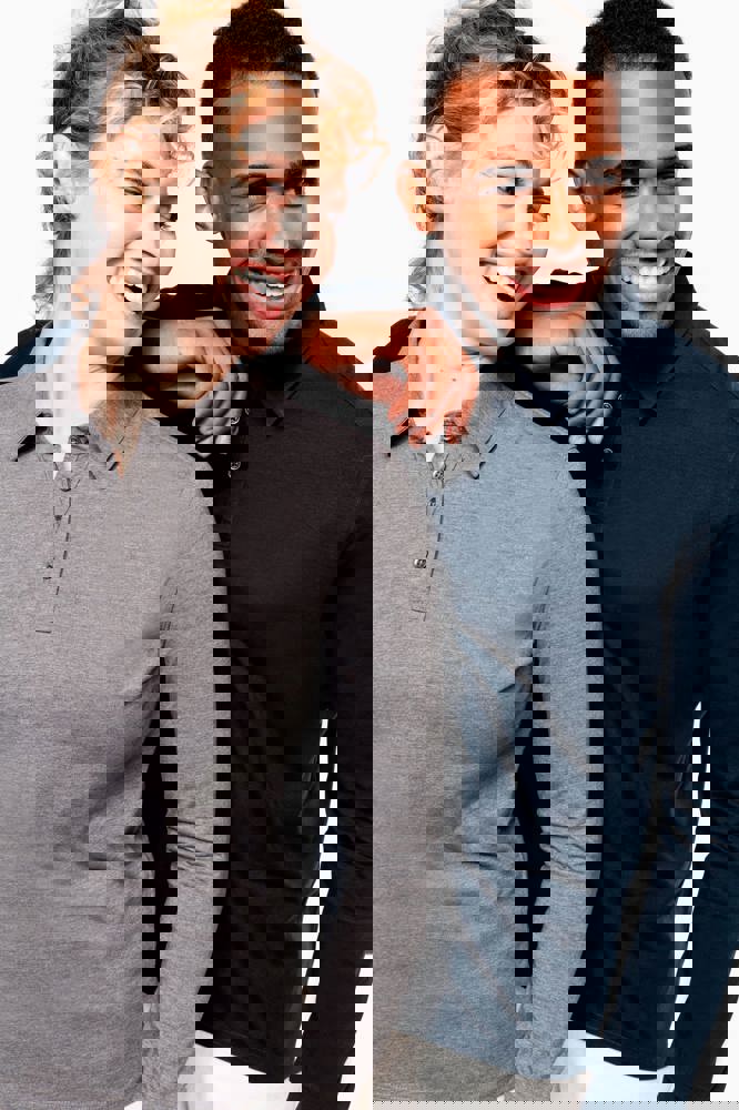 100 % Baumwolle (65 % Baumwolle / 35 % Polyester für Grey Heather - Oxford Grey : 90% Baumwolle / 10% viskose). Jerseytrikot aus gekämmter Baumwolle. Hemdkragen. Knopfleiste mit 4 kontrastfarbenen Metallknöpfen. Passe auf der Schulter. Strickbündchen am Ärmelsaum. Doppelnaht am unteren Saum.