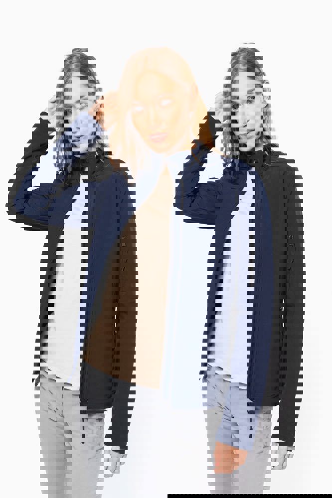 3-lagiges Verbund-Fleece. Membrantechnologie: atmungsaktiv 3000 gr/m²/24h und wasserdicht 8000 mm. Außenmaterial: 95% Polyester 5% Elasthan - Mittelschicht: atmungsaktives Material - Innenmaterial: Microfleece. Durchgehender Qualitäts-Reißverschluss. 2 Vordertaschen mit Reißverschluss. 1 Tasche mit Reißverschluss auf dem linken Ärmel.