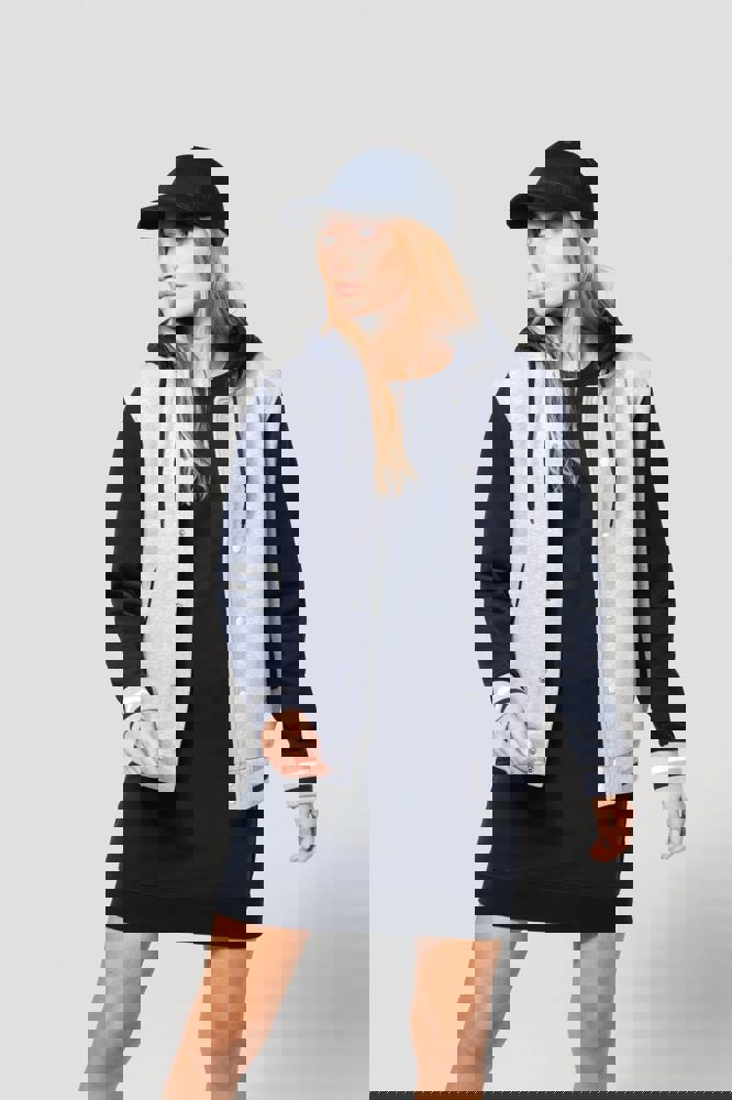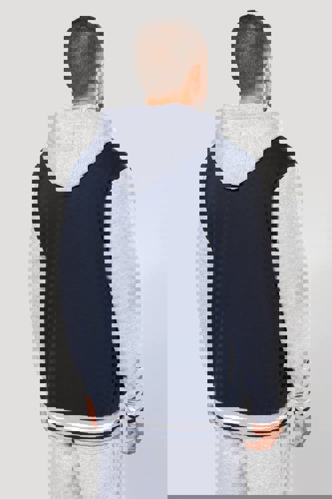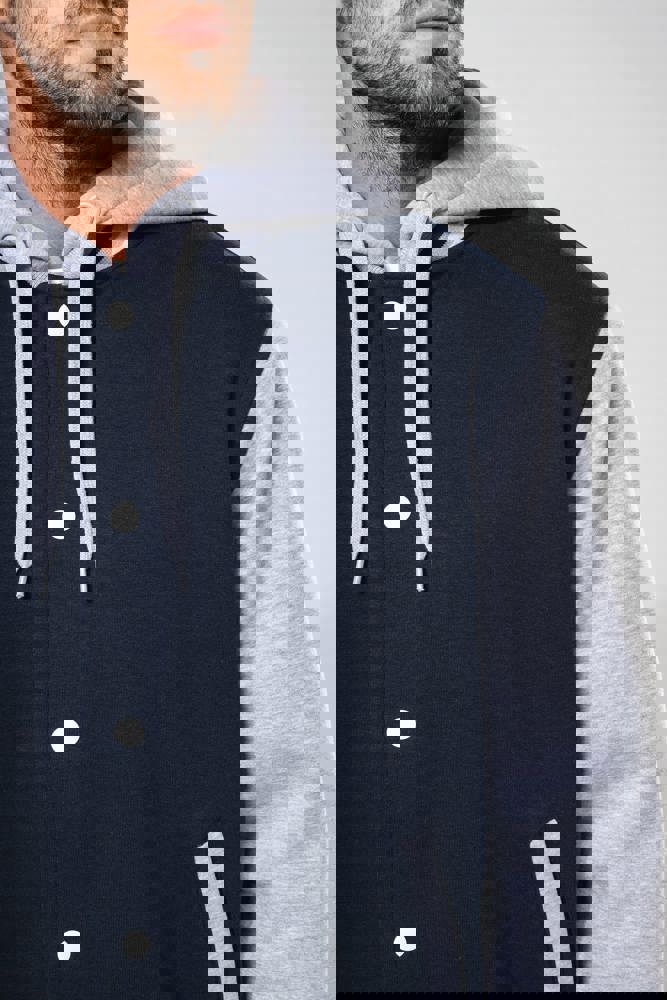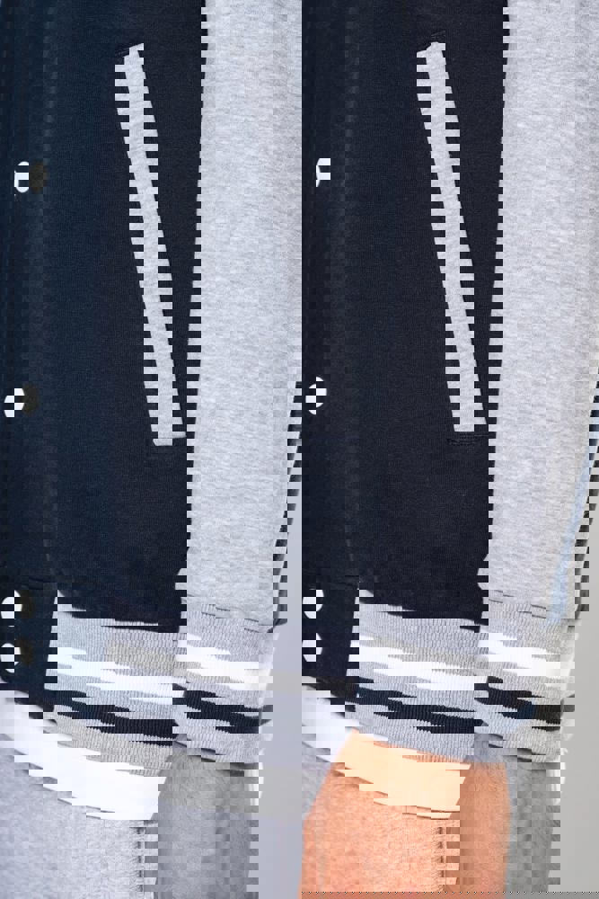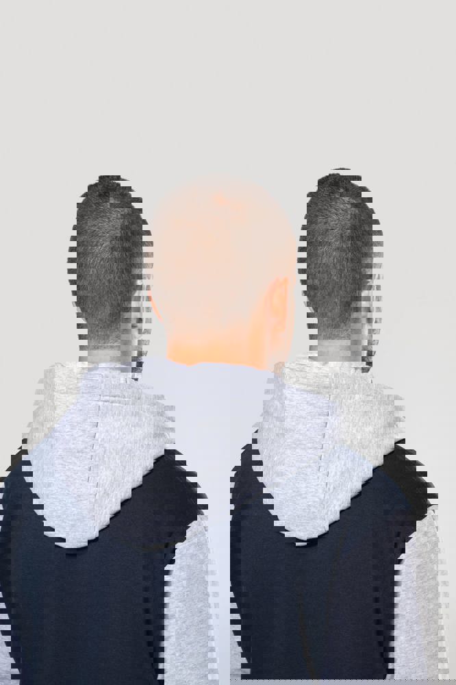70 % Baumwolle / 30 % Polyester. Gebürstetes 3-Faden-Fleece. Kontrastfarbene Set-in-Ärmel. Dreiteilige Kapuze, Jersey-Futter und kontrastfarbene Kordelzüge. Druckknopf-Verschluss auf der Vorderseite. Strickbündchen mit zwei kontrastfarbenen Paspeln an Kragen, Ärmeln und unterem Saum. 2 Paspeltaschen auf der Vorderseite. Fischgrätnackenband und Befestigungsschlaufe auf der Krageninnenseite. Kein Markenetikett am Kragen, nur Größenkennzeichnung, für eine leichtere Veredelung. Die College Jacke ist ein echtes Kultmodell, das bereits zahlreiche Moden überstanden hat. Man sieht sie überall, sowohl in der Straße als auch in Schulen und sogar auf den Laufstegen.