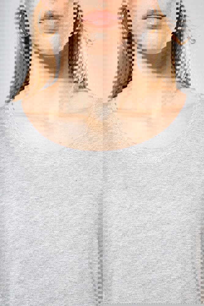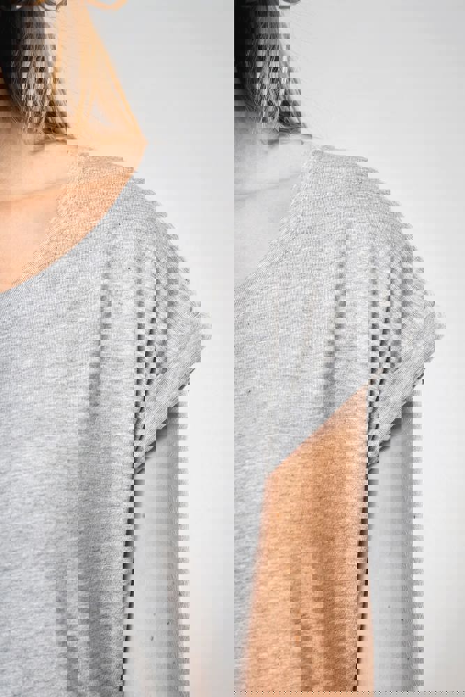 100 % gekämmte Jersey Baumwolle (Light Grey Heather : 90% Baumwolle / 10% Viskose). Sehr bequemer Schnitt. Großer Halsausschnitt mit Nackenband und Ärmelabschluss mit Umschlag. Abgerundeter Saum mit Doppelnähten. Kein Markenetikett am Kragen, nur Größenkennzeichnung für eine leichtere Veredelung.