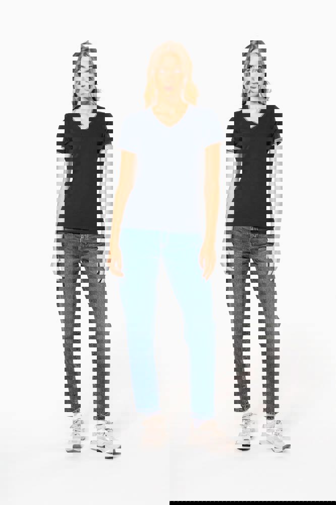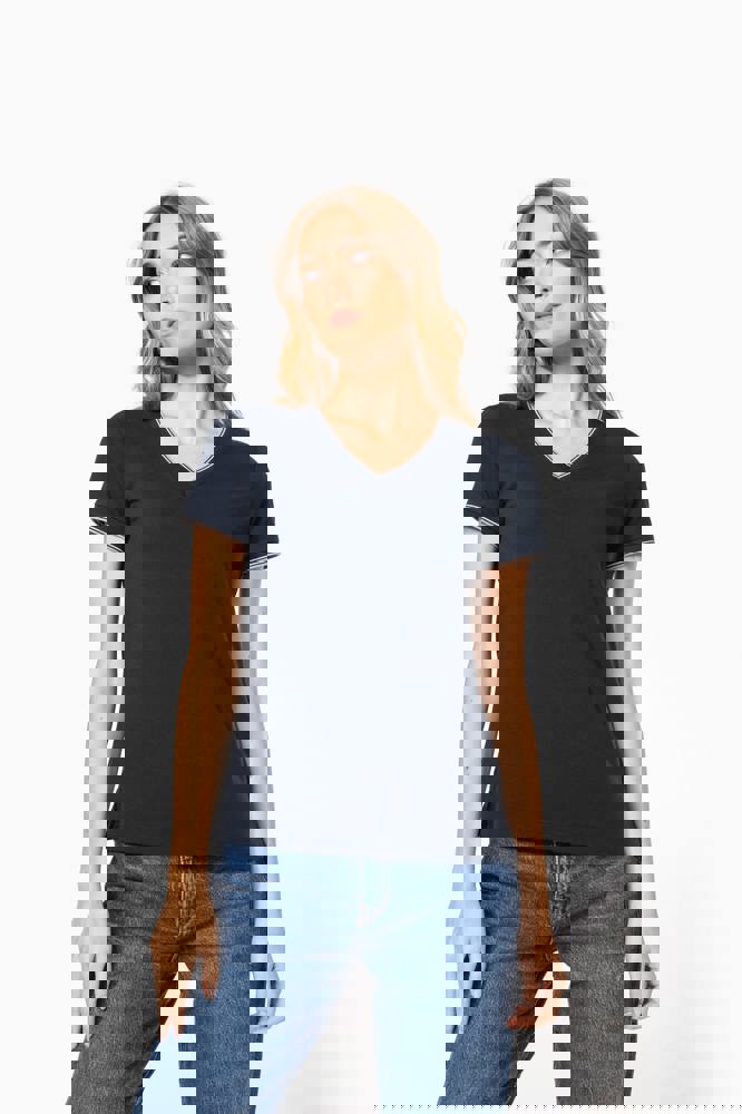 K394 - Damen T-Shirt aus Piqué-Trikot mit V-Ausschnitt