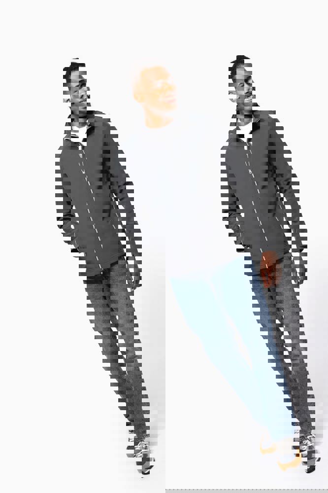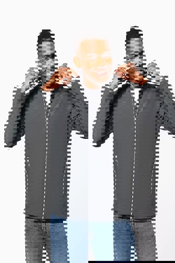 Außenmaterial: 95 % Polyester / 5 % Elasthan. Innenmaterial: 100 % Polyester-Mikrofleece. Wasserabweisendes Gewebe. Gerader Schnitt. 2 Reißverschluss-Außentaschen. Kontrastfarbene Reißverschlüsse. Verlängerter Rücken. Ziernähte an Schultern und Seiten.
