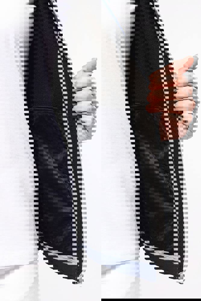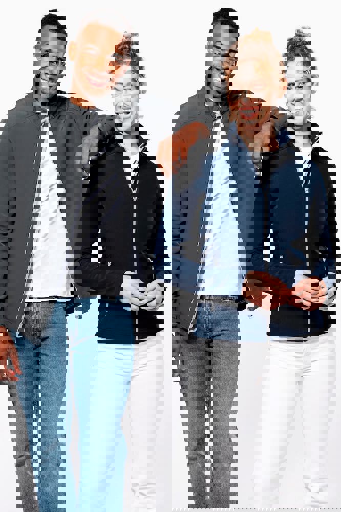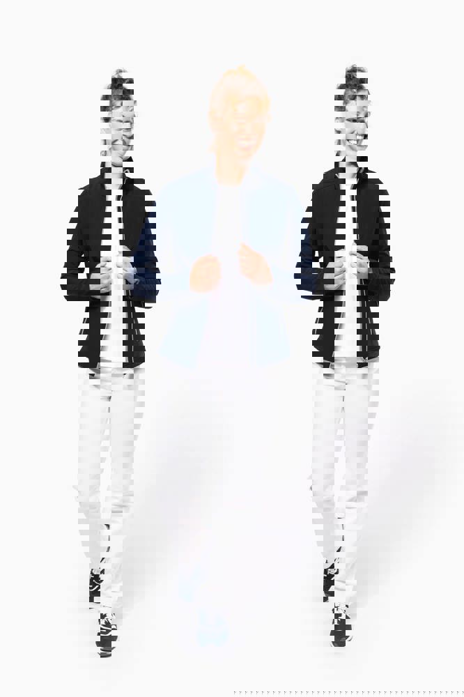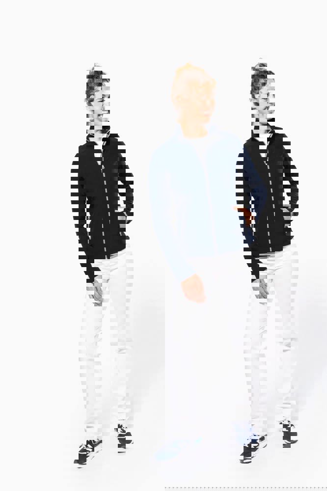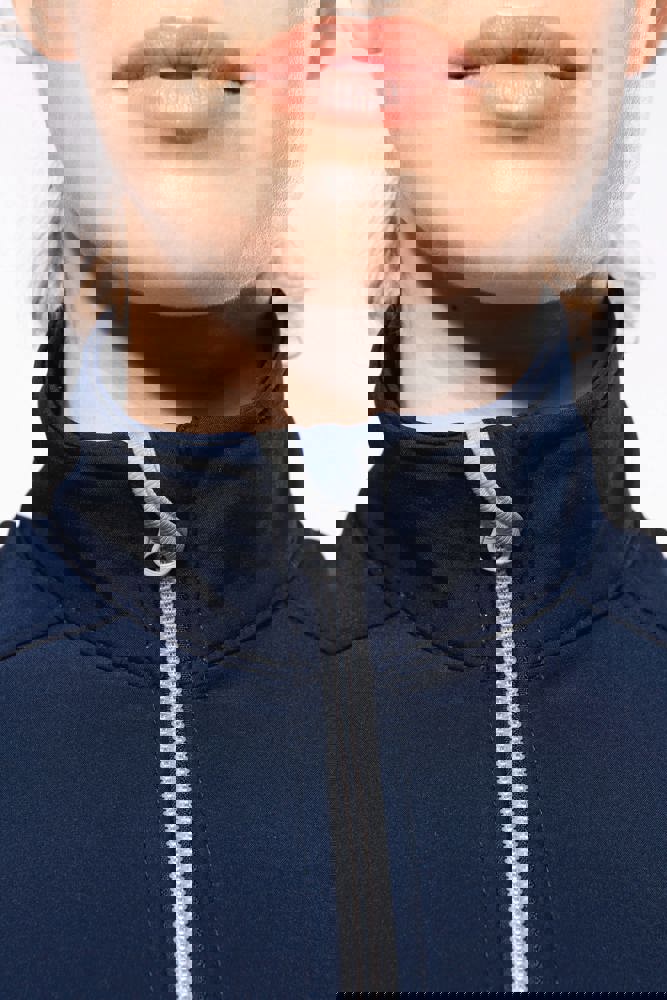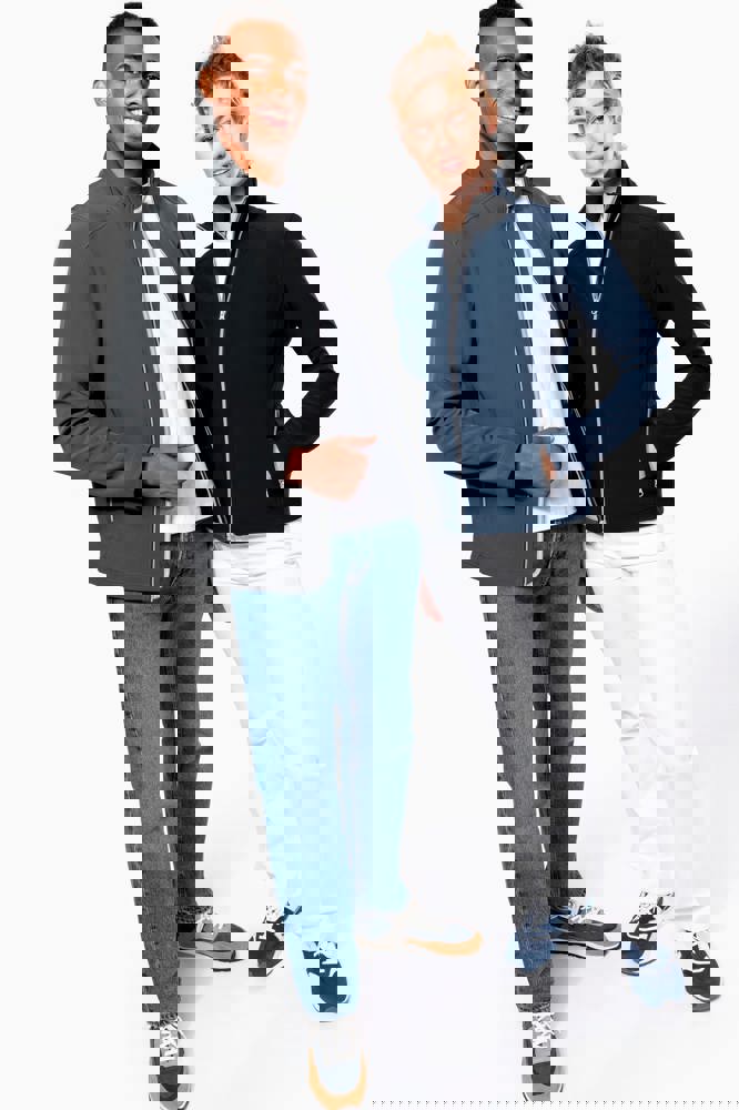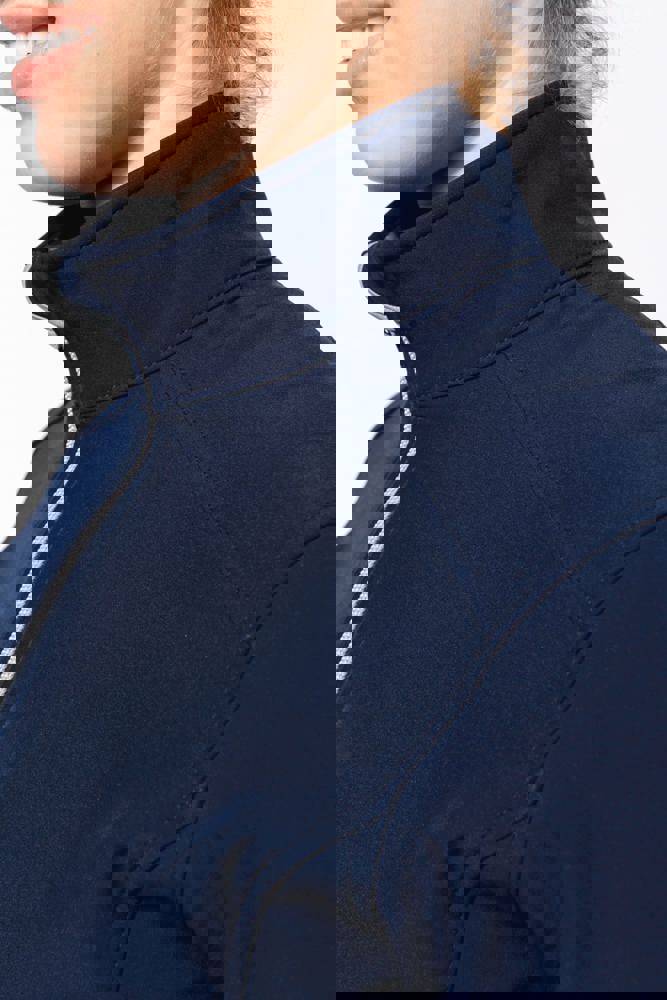Außenmaterial: 95 % Polyester / 5 % Elasthan. Innenmaterial: 100 % Polyester-Mikrofleece. Wasserabweisendes Gewebe. Taillierter Schnitt. 2 Reißverschluss-Außentaschen. Kontrastfarbene Reißverschlüsse. Verlängerter Rücken. Ziernähte an Schultern und Seiten.
