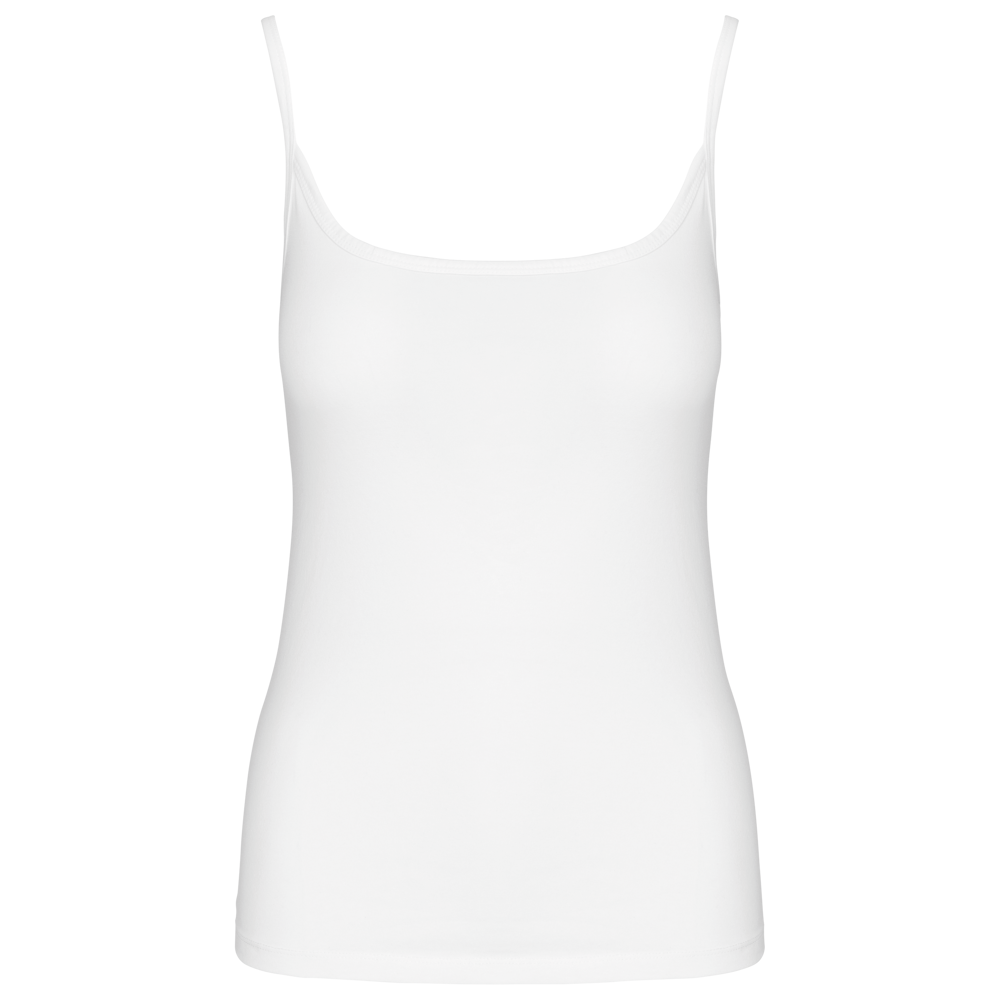 95 % Baumwolle / 5 % Elasthan. (Light Grey Heather : 87% Baumwolle / 9 % Viskose / 4 % Elasthan). Jerseytrikot aus gekämmter Baumwolle. Feine Träger und femininer Schnitt. Doppelnaht am unteren Saum.