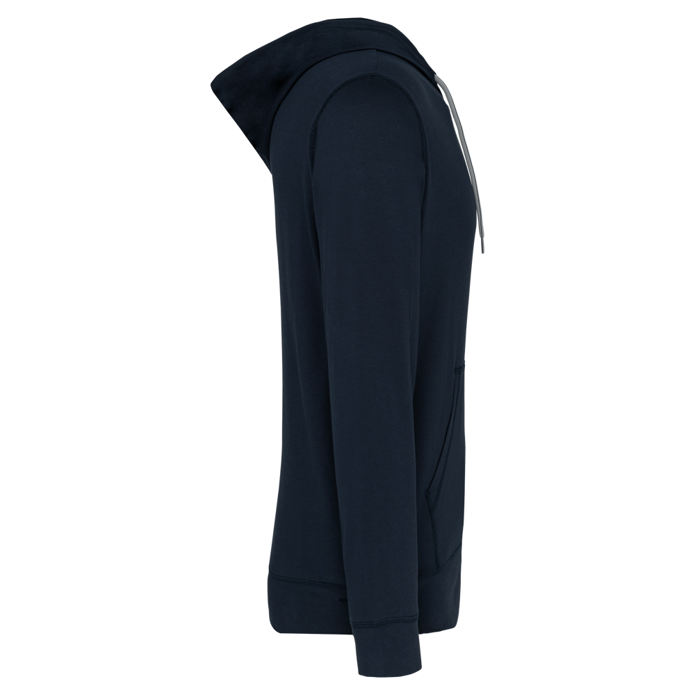 100 % Baumwolle (Oxford Grey: 90 % Baumwolle / 10 % Viskose). Gekämmte Baumwolle, Enzymwäsche veredelt. Super weiche Textur. Moderner, lässiger Schnitt. Kontrastfarbenes Nackenband (Dark Grey bei Farbton Oxford Grey und Oxford Grey bei allen anderen Farbtönen). 2 Kängurutaschen. Ärmelabschlüsse und Bund abgesetzt. Reißverschluss und Kordelzug an der Kapuze in Kontrastfarbe.