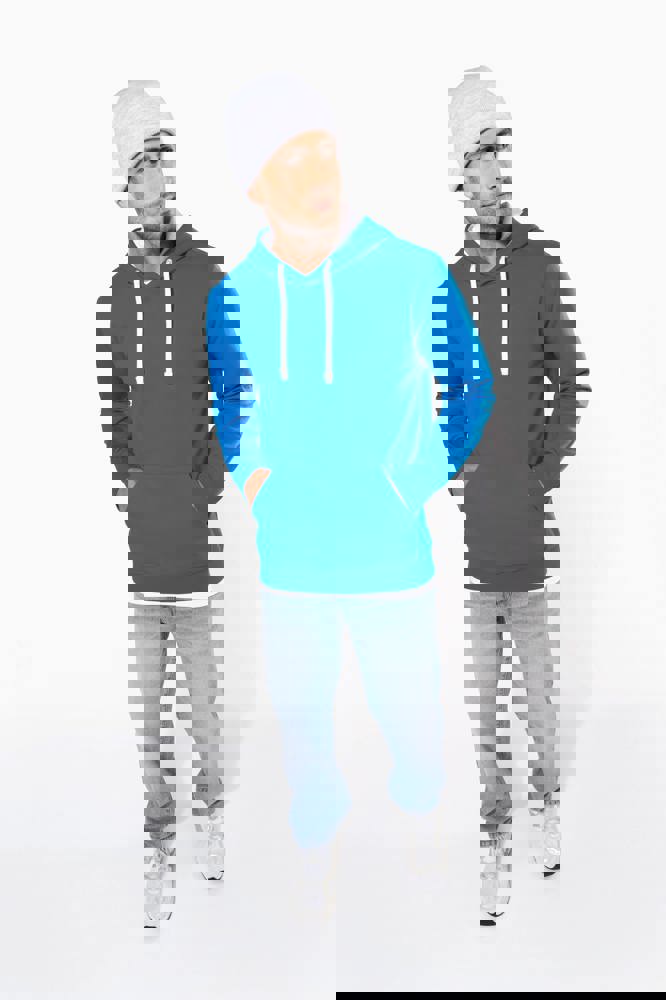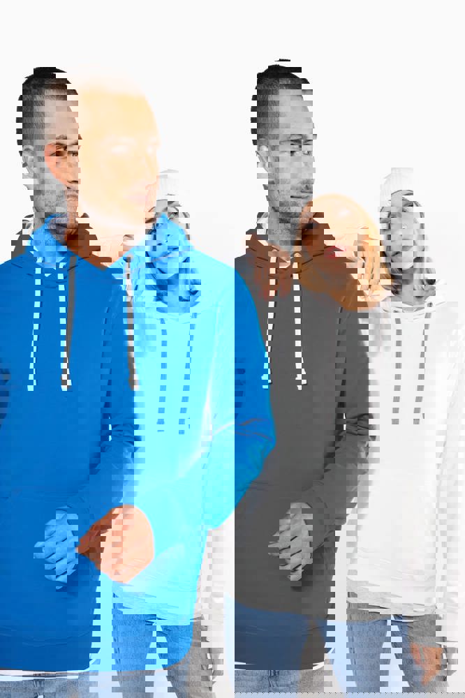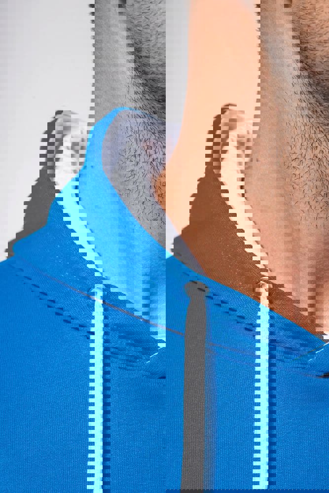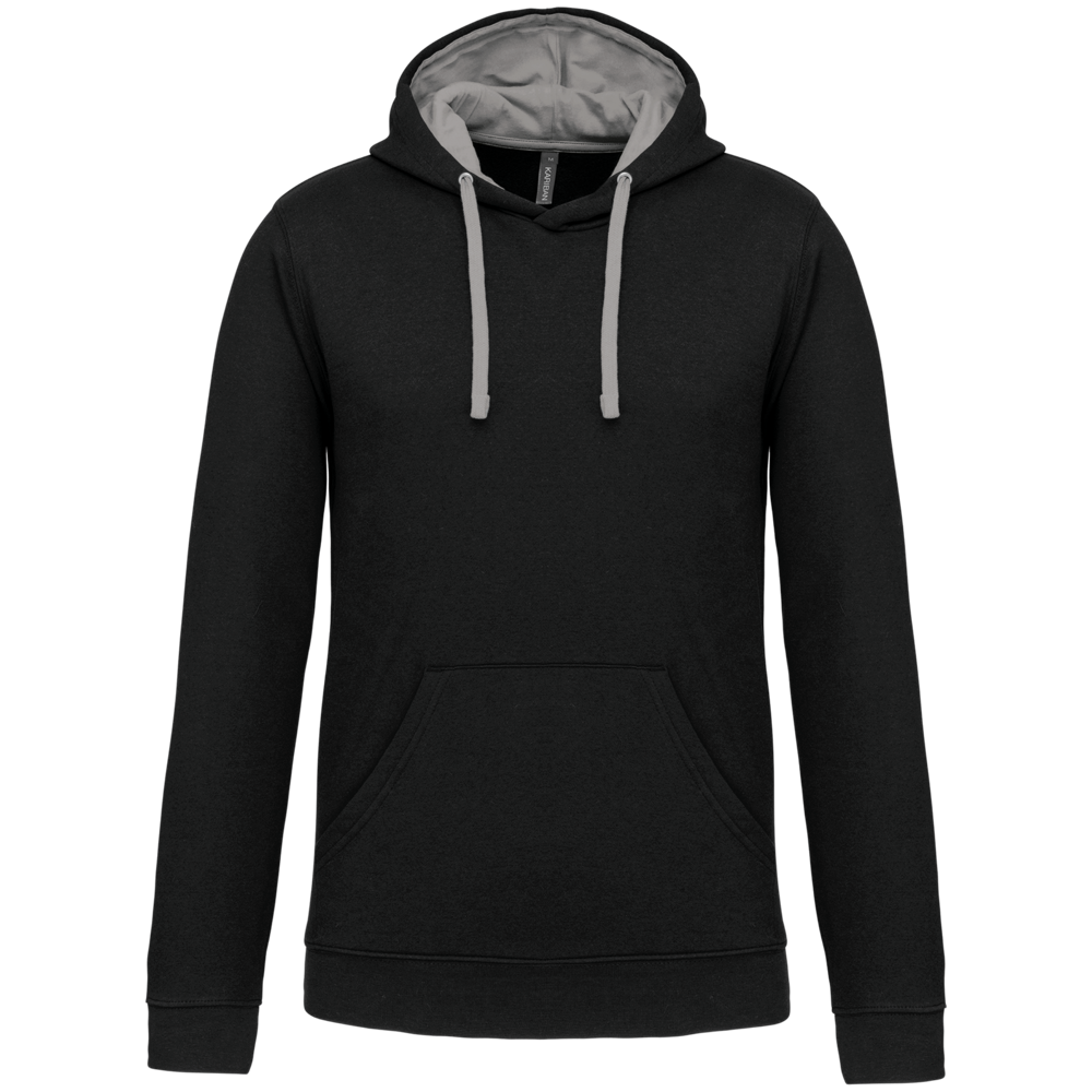 80% Baumwolle / 20% Polyester. Gekämmte Baumwolle. Gebürstetes Fleece. Kängurutasche und Kragen mit Kopfhörerkabel-Durchzug. Strickbündchen an Ärmeln und Saum. Gefütterte Kapuze inwendig und Kordelzug in Kontrastfarbe.