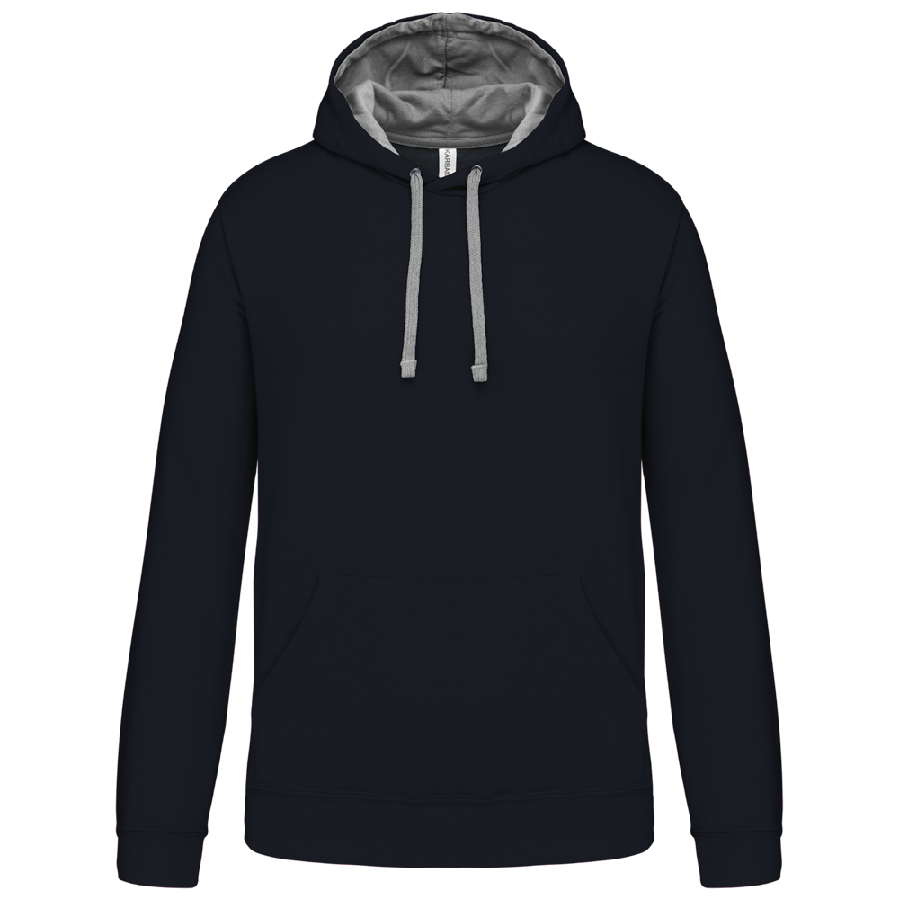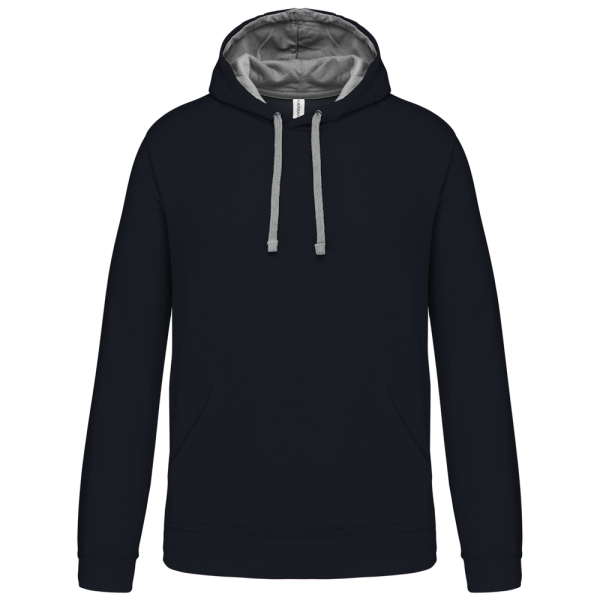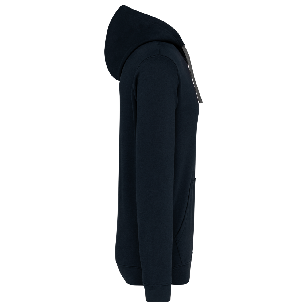 80% Baumwolle / 20% Polyester. Gekämmte Baumwolle. Gebürstetes Fleece. Kängurutasche und Kragen mit Kopfhörerkabel-Durchzug. Strickbündchen an Ärmeln und Saum. Gefütterte Kapuze inwendig und Kordelzug in Kontrastfarbe.
