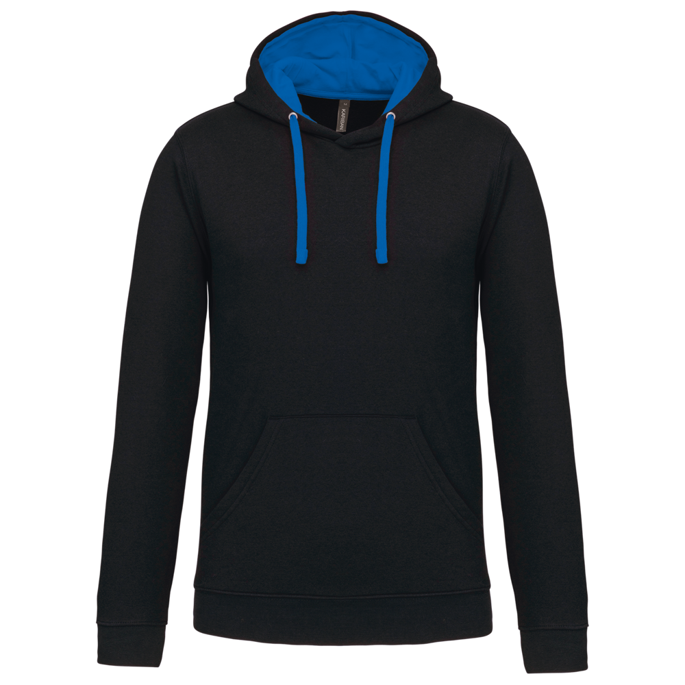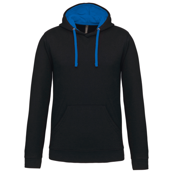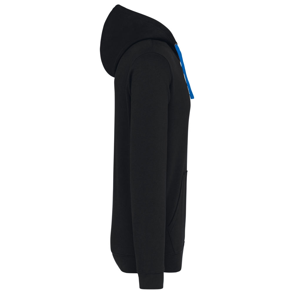 80% Baumwolle / 20% Polyester. Gekämmte Baumwolle. Gebürstetes Fleece. Kängurutasche und Kragen mit Kopfhörerkabel-Durchzug. Strickbündchen an Ärmeln und Saum. Gefütterte Kapuze inwendig und Kordelzug in Kontrastfarbe.