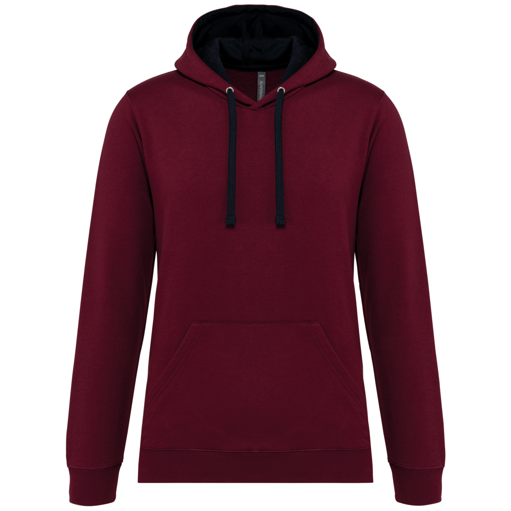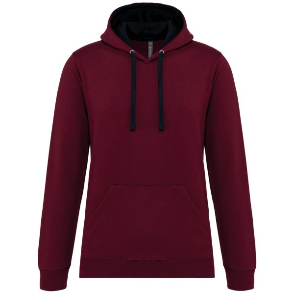 80% Baumwolle / 20% Polyester. Gekämmte Baumwolle. Gebürstetes Fleece. Kängurutasche und Kragen mit Kopfhörerkabel-Durchzug. Strickbündchen an Ärmeln und Saum. Gefütterte Kapuze inwendig und Kordelzug in Kontrastfarbe.