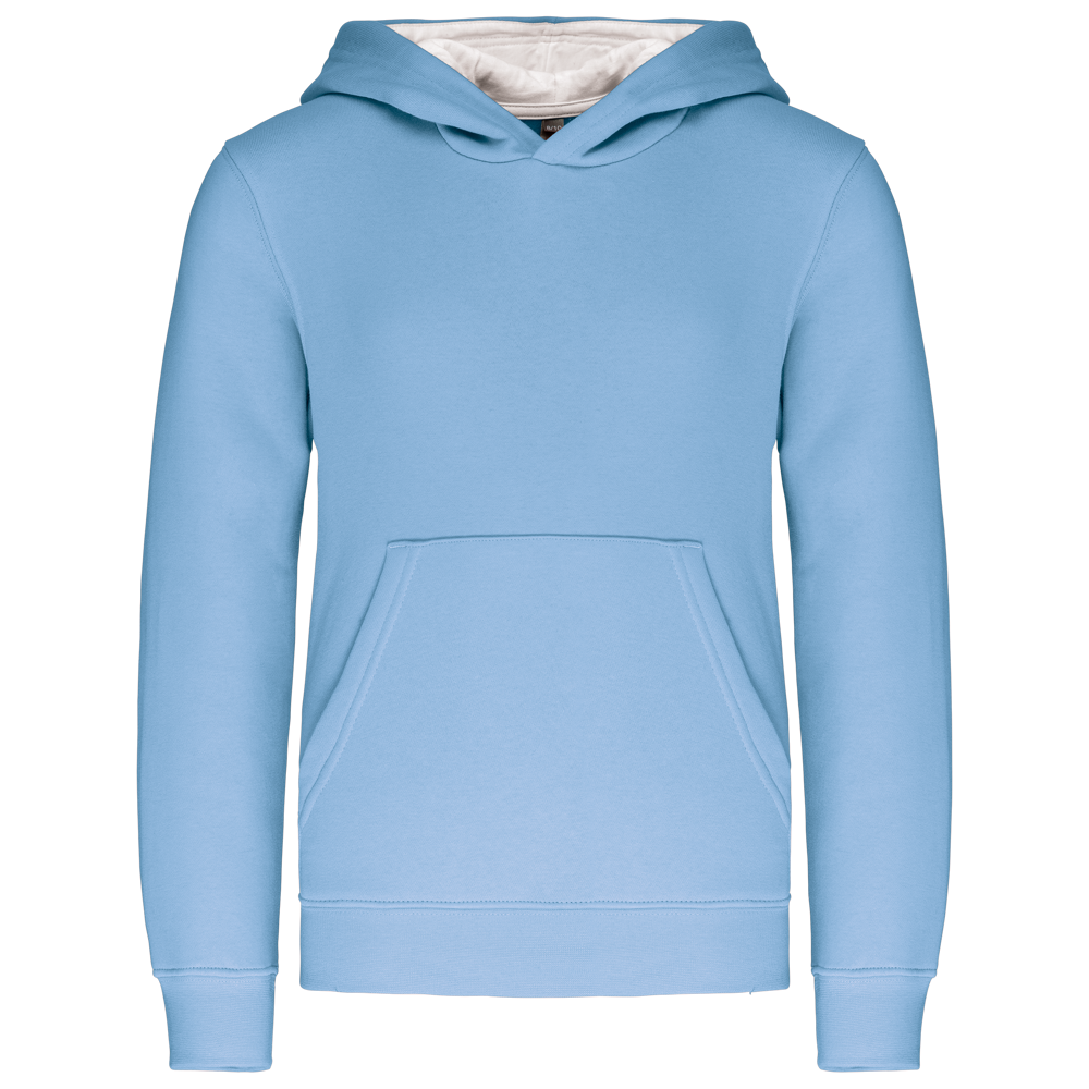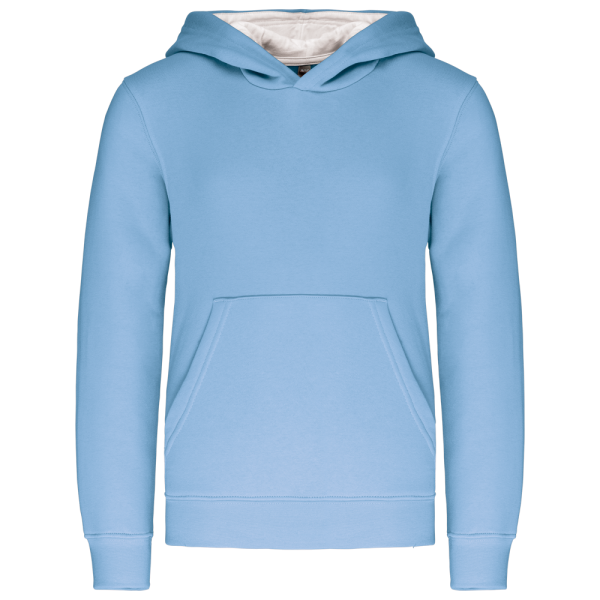 80% Baumwolle / 20% Polyester. Gekämmte Baumwolle. Gebürstetes Fleece. Kängurutasche und Kragen mit Kopfhörerkabel-Durchzug. Ärmel und Bund gerippt. Gefütterte Kapuze inwendig in Kontrastfarbe.