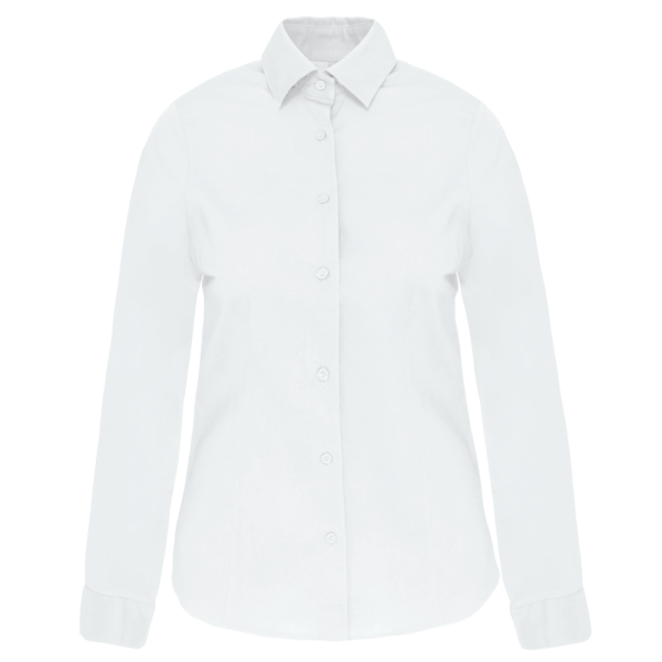 97% Baumwolle / 3% Elasthan. Körpernaher Schnitt. Klassischer, knopfloser Kragen. Farblich abgestimmte Knöpfe. Je 2 Abnäher am Rücken und auf der Vorderseite für taillierte Passform. Abgeschrägte Manschette mit 2 Knöpfen. 1 Ersatzknopf. Abgerundeter Saum.