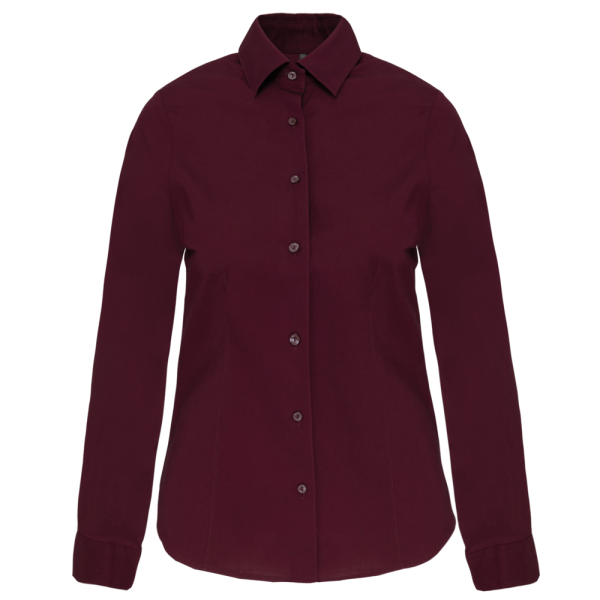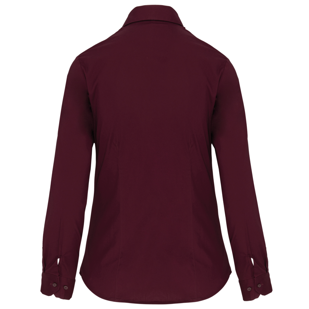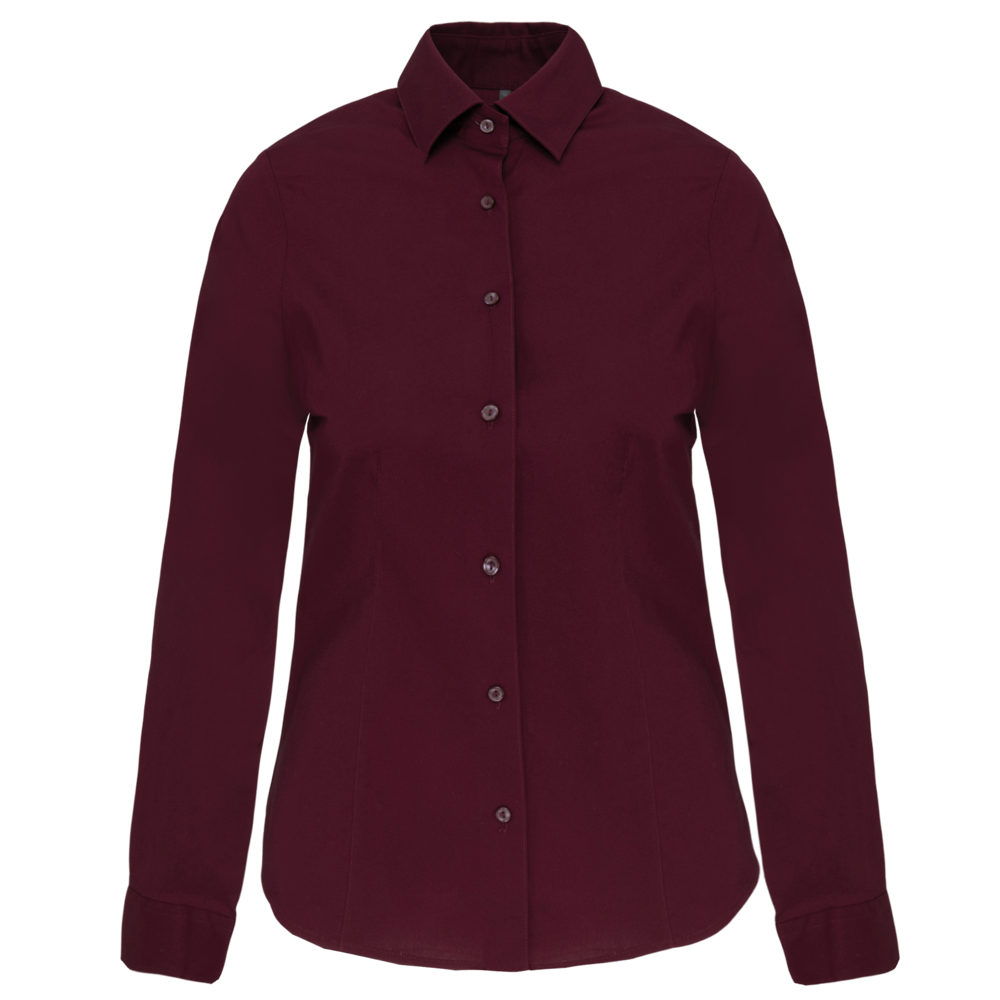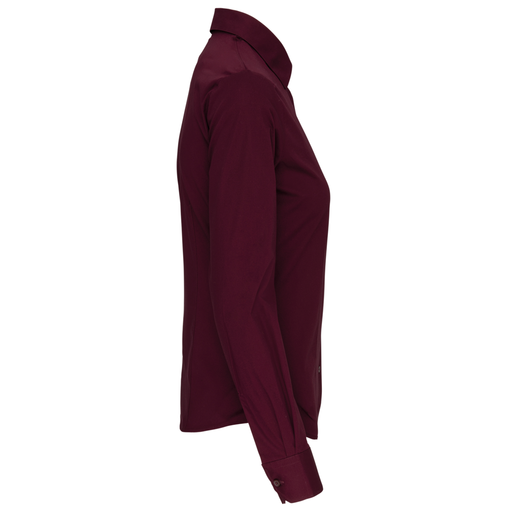 97% Baumwolle / 3% Elasthan. Körpernaher Schnitt. Klassischer, knopfloser Kragen. Farblich abgestimmte Knöpfe. Je 2 Abnäher am Rücken und auf der Vorderseite für taillierte Passform. Abgeschrägte Manschette mit 2 Knöpfen. 1 Ersatzknopf. Abgerundeter Saum.