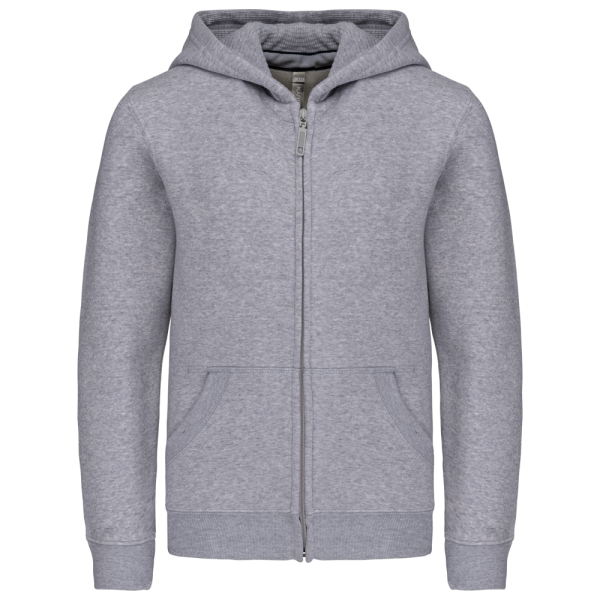 80% Baumwolle / 20% Polyester. Gekämmte Baumwolle. Gebürstetes Fleece. Verstärktes Kontrast-Nackenband (Heather Grey für alle Farben, Middle Grey für Oxford-Grey). Kängurutasche. Gerippt an Bund und Saum. Gefütterte Kapuze. Reißverschluss.