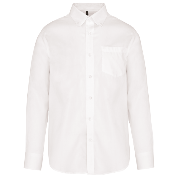 100% Baumwoll-Twill. Bügelfreies Hemd. Verstärkter Button-Down-Kragen. Farblich abgestimmte Knöpfe. Aufgesetzte Brusttasche links. Rückwärtige Schulterpasse mit 2 seitlich eingelegten Falten. Eingesäumte Knopfleiste. Abgeschrägte Manschette mit 2 Knöpfen, dazu 1 Knopf auf dem Manschettenaufschlag. 2 Ersatzknöpfe. Abgerundeter Saum.