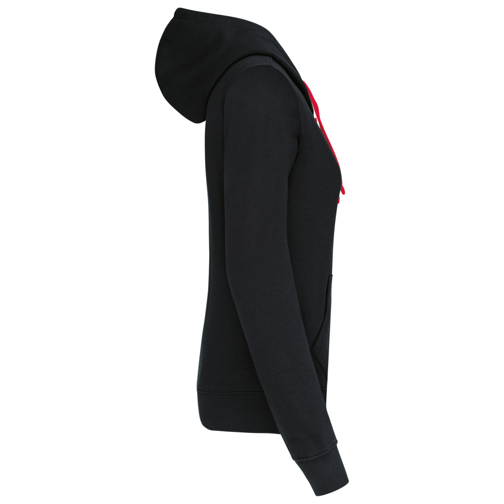 80% Baumwolle / 20% Polyester. Gekämmte Baumwolle. Gebürstetes Fleece. Kopfhörer-Kängurutasche und Kragen mit Kopfhörerkabel-Durchzug. Strickbündchen an Ärmeln und Saum. Gefütterte Kapuze inwendig und Kordelzug in Kontrastfarbe.