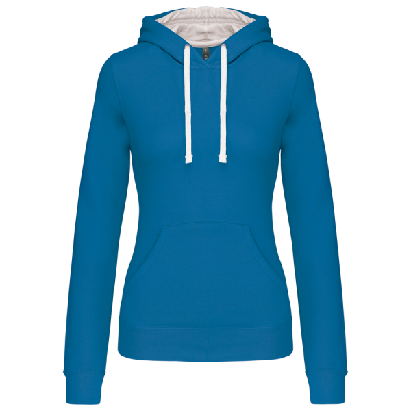 80% Baumwolle / 20% Polyester. Gekämmte Baumwolle. Gebürstetes Fleece. Kopfhörer-Kängurutasche und Kragen mit Kopfhörerkabel-Durchzug. Strickbündchen an Ärmeln und Saum. Gefütterte Kapuze inwendig und Kordelzug in Kontrastfarbe.