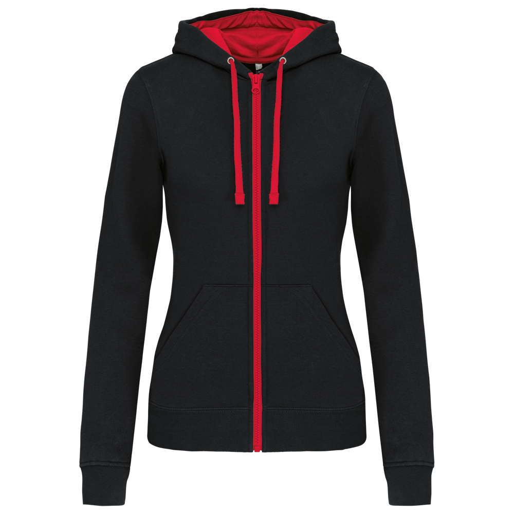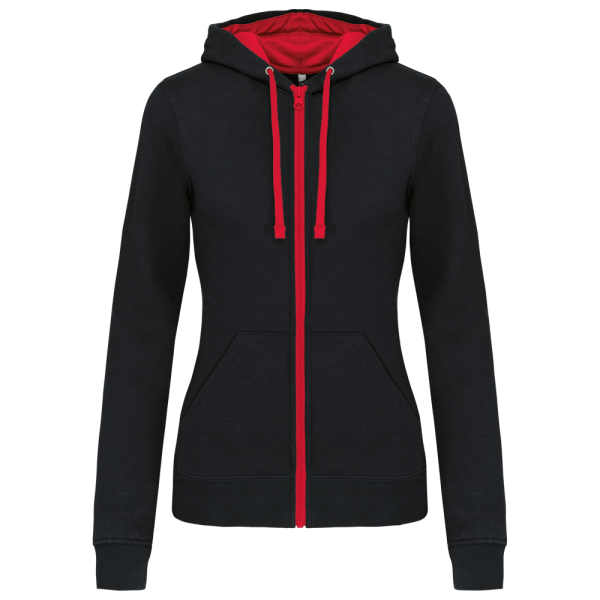 K467 - DAMEN-KAPUZENSWEATSHIRT BICOLOR mit Reißverschluss
