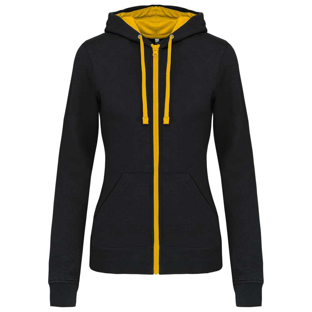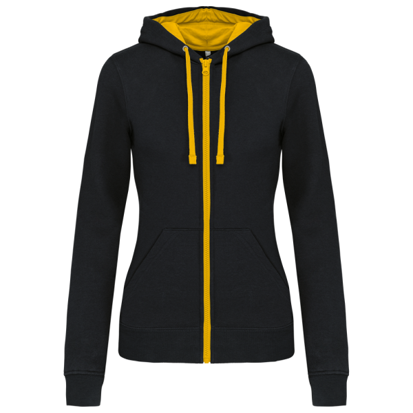 K467 - DAMEN-KAPUZENSWEATSHIRT BICOLOR mit Reißverschluss