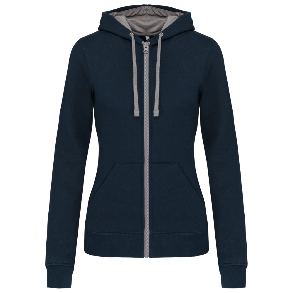 K467 - DAMEN-KAPUZENSWEATSHIRT BICOLOR mit Reißverschluss