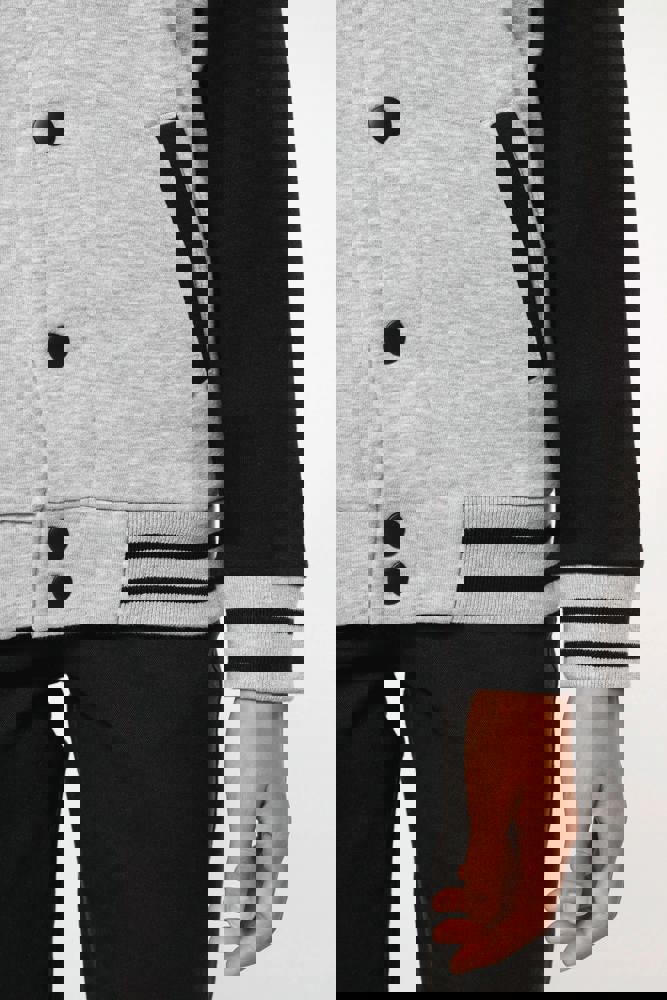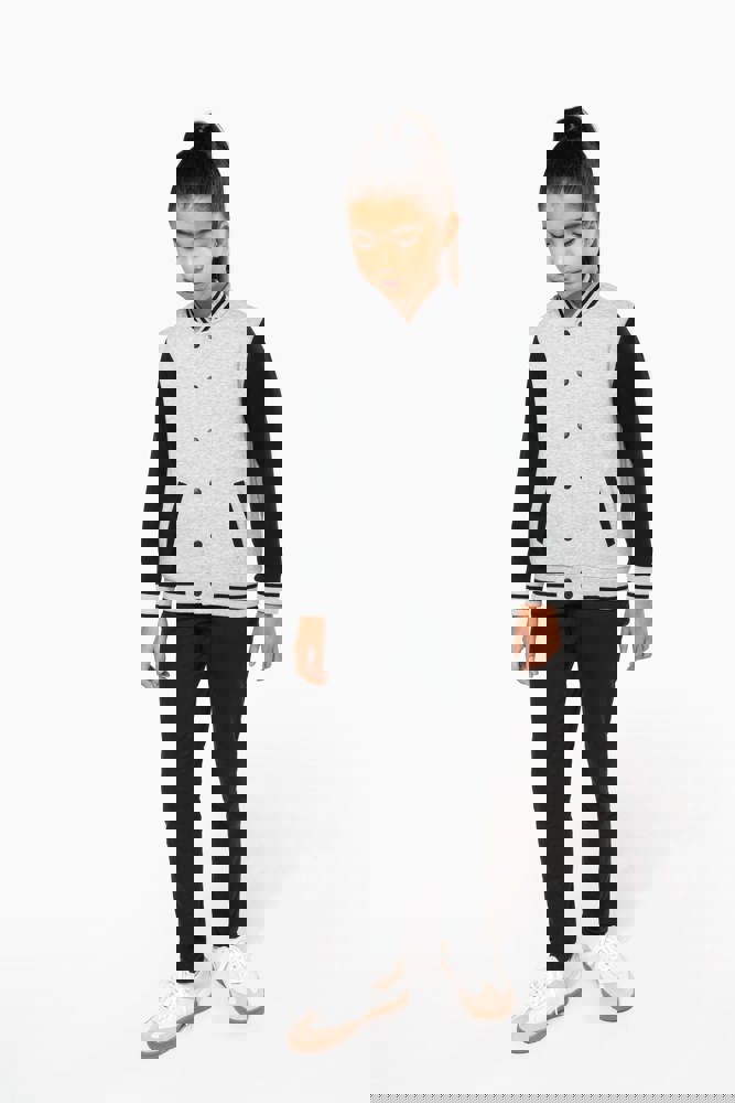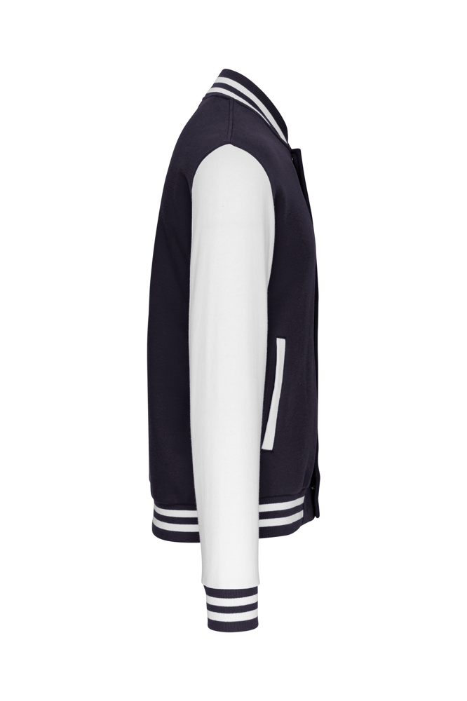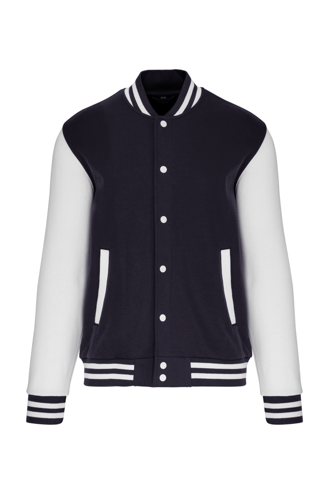 70 % Baumwolle / 30 % Polyester. Gebürstetes 3-Faden-Fleece. Kontrastfarbene Set-in-Ärmel. Druckknopf-Verschluss auf der Vorderseite. Strickbündchen mit zwei kontrastfarbenen Paspeln an Kragen, Ärmeln und unterem Saum. 2 Paspeltaschen auf der Vorderseite. Fischgrätnackenband und Befestigungsschlaufe auf der Krageninnenseite. Kein Markenetikett am Kragen, nur Größenkennzeichnung, für eine leichtere Veredelung. Ein echtes Kultmodell: Man sieht sie überall, sowohl in der Straße als auch in Schulen und sogar auf den Laufstegen.