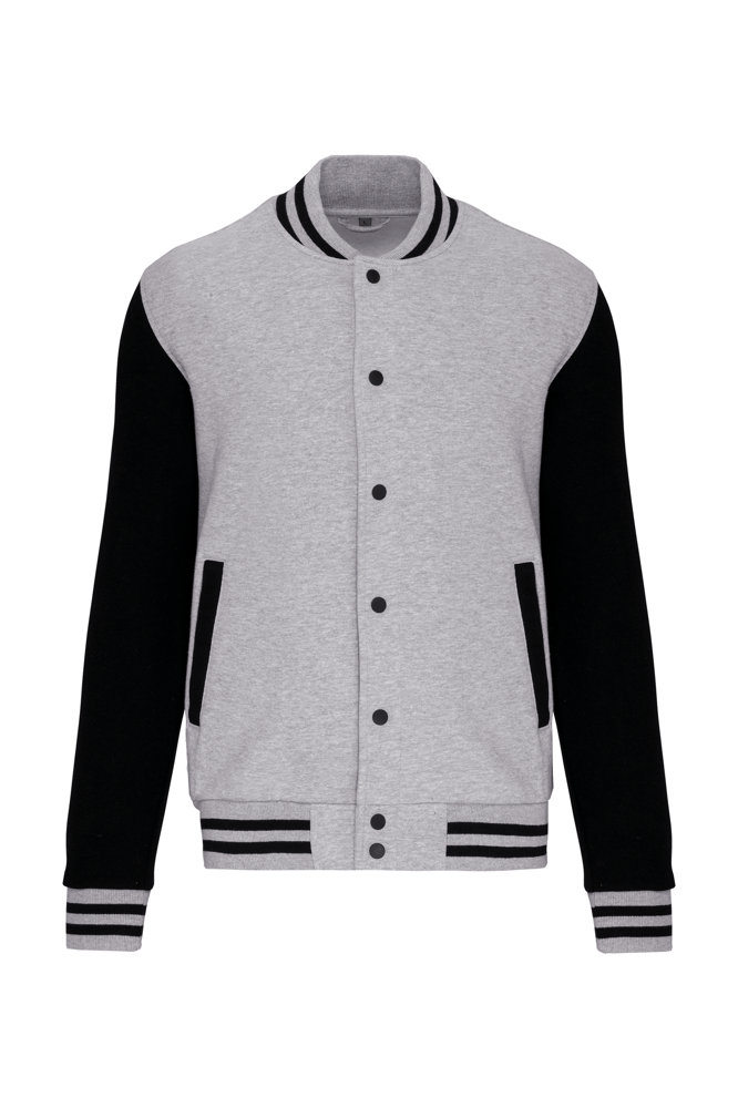 70 % Baumwolle / 30 % Polyester. Gebürstetes 3-Faden-Fleece. Kontrastfarbene Set-in-Ärmel. Druckknopf-Verschluss auf der Vorderseite. Strickbündchen mit zwei kontrastfarbenen Paspeln an Kragen, Ärmeln und unterem Saum. 2 Paspeltaschen auf der Vorderseite. Fischgrätnackenband und Befestigungsschlaufe auf der Krageninnenseite. Kein Markenetikett am Kragen, nur Größenkennzeichnung, für eine leichtere Veredelung. Ein echtes Kultmodell: Man sieht sie überall, sowohl in der Straße als auch in Schulen und sogar auf den Laufstegen.