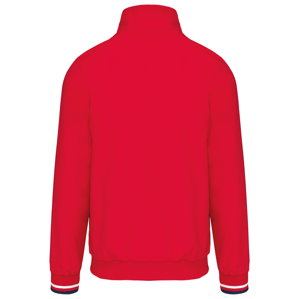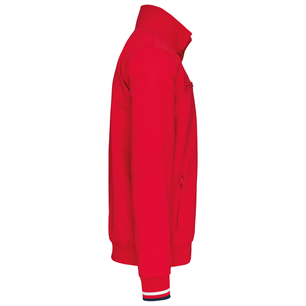 100% Polyamid Taslan Ottoman. Futter: 100% Polyester-Netzgewebe. Solides Gewebe mit Matteffekt. Zwei Fronttaschen mit Reißverschluss. Eine Brusttasche. Eine Innentasche. Kragen und Ärmel mit Kontraststreifen. Netzfutter mit Reißverschluss für leichtes Veredeln. Rippstrick am Bund einfarbig. Rippstrick an den Ärmeln in Kontrastfarbe.
