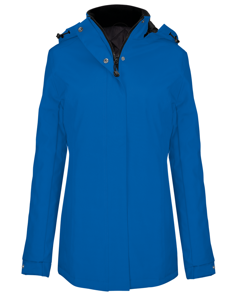 Außenseite: 100 % Oxford-Polyester. Innenseite: Polyester-Steppfutter. Reißverschluss mit Leiste und unsichtbaren Druckknöpfen. 2 Reißverschluss-Außentaschen. 1 Reißverschluss-Innentasche. Abnehmbare Kapuze. Kragen mit Fleecefutter. Reißverschluss für leichtes Veredeln.