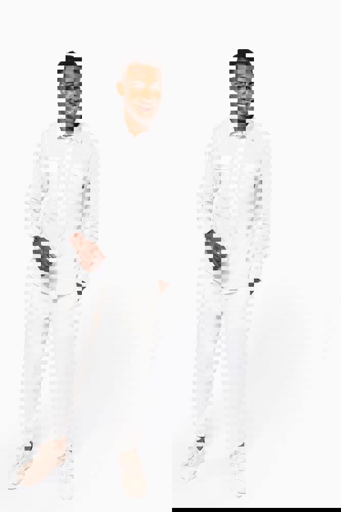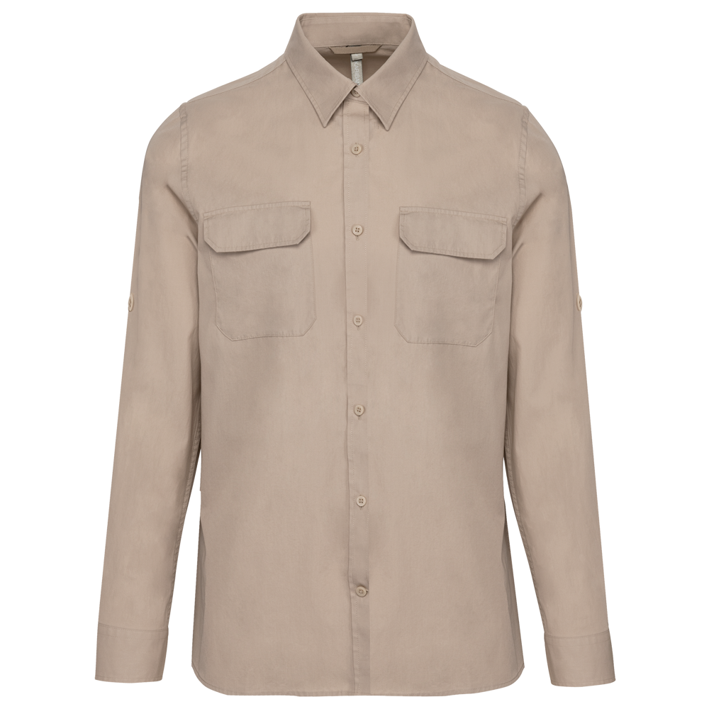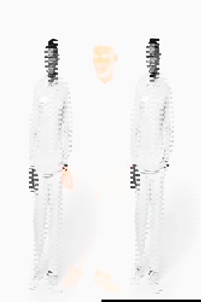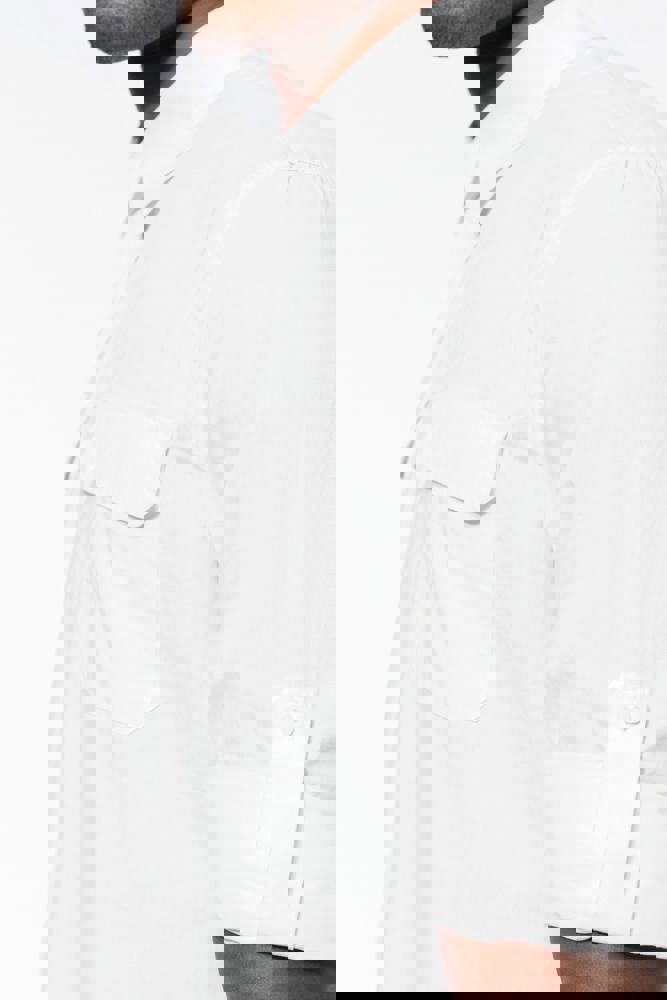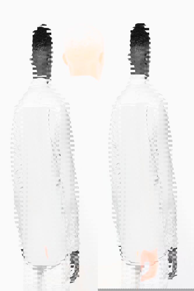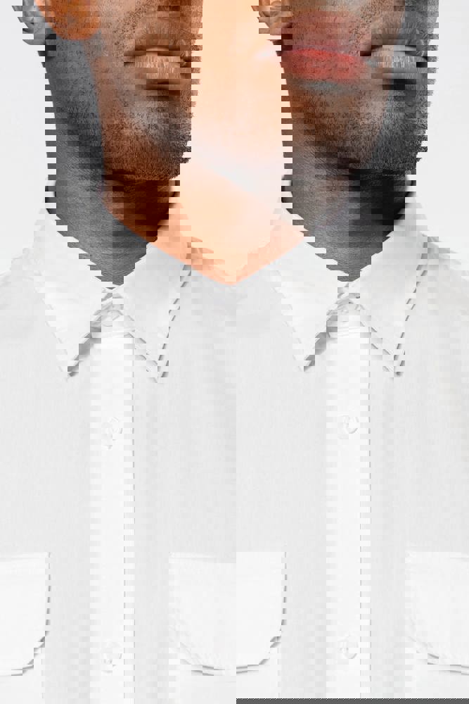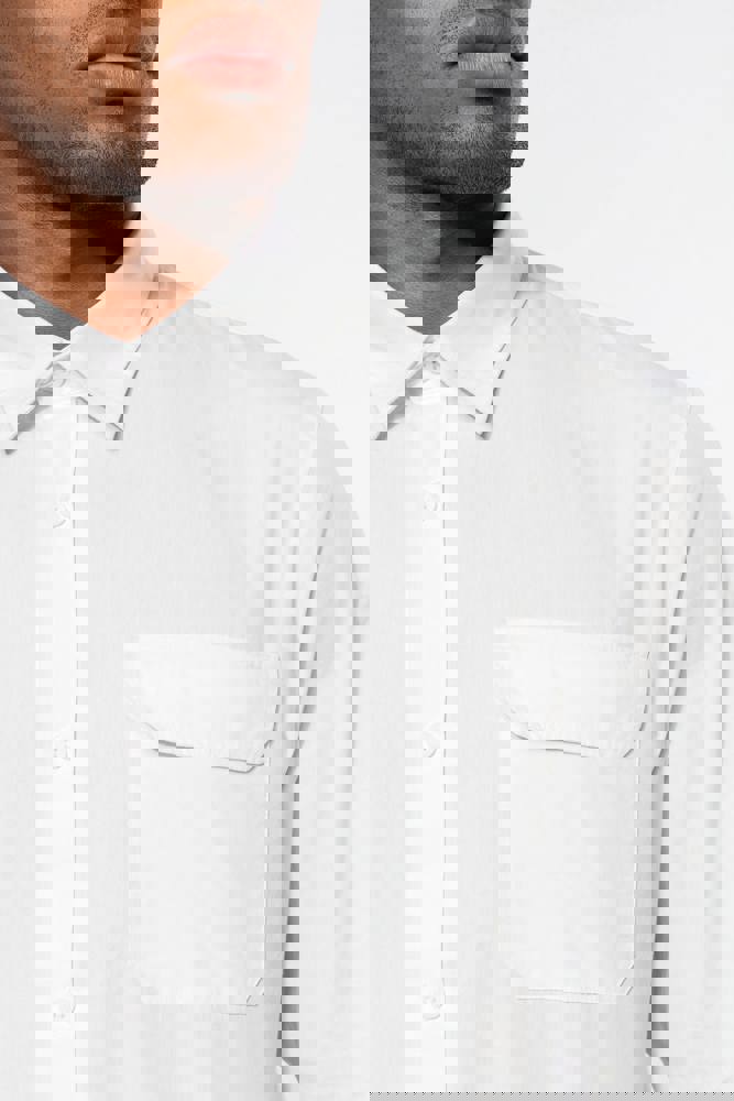 100 % Baumwolle. Popeline. Knopfloser Kragen. 2 aufgesetzte Taschen mit Klappe auf der Vorderseite. Verstellbare Kapuzinermanschetten. Krempelbare Ärmel mit Knopfleiste. Das Hemd ist gewaschen. Dieses Produkt wurde speziell behandelt, um einen Abnutzungseffekt zu erzeugen. Dieses handwerkliche Verfahren ist mit farblichen Unterschieden von einem Produkt zum anderen verbunden und macht jedes Stück einzigartig.
