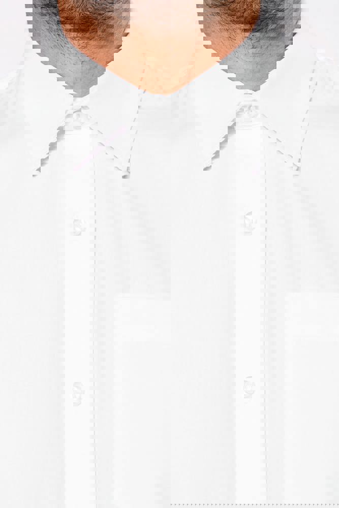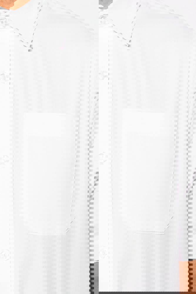 100% Baumwolle Popeline. Pflegeleichter Stoff. Stäbchenverstärkter Kragen. Farblich abgestimmte Knöpfe. Aufgesetzte Brusttasche auf der linken Seite. Rückwärtige Schulterpasse mit 2 an den Seiten eingelegten Falten. Eingesäumte Knopfleiste. 1 Ersatzknopf. Abgerundeter Saum.