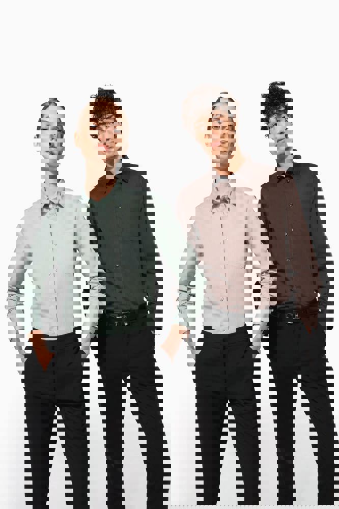 65% Polyester / 35% Baumwoll-Popeline. Pflegeleichter Stoff. Stäbchenverstärkter Kragen. Farblich abgestimmte Knöpfe. Aufgesetzte Brusttasche auf der linken Seite. Rückwärtige Schulterpasse. Eingesäumte Knopfleiste. Manschette mit 1 Knopf, dazu 1 Knopf auf dem Manschettenaufschlag. 2 Ersatzknöpfe.