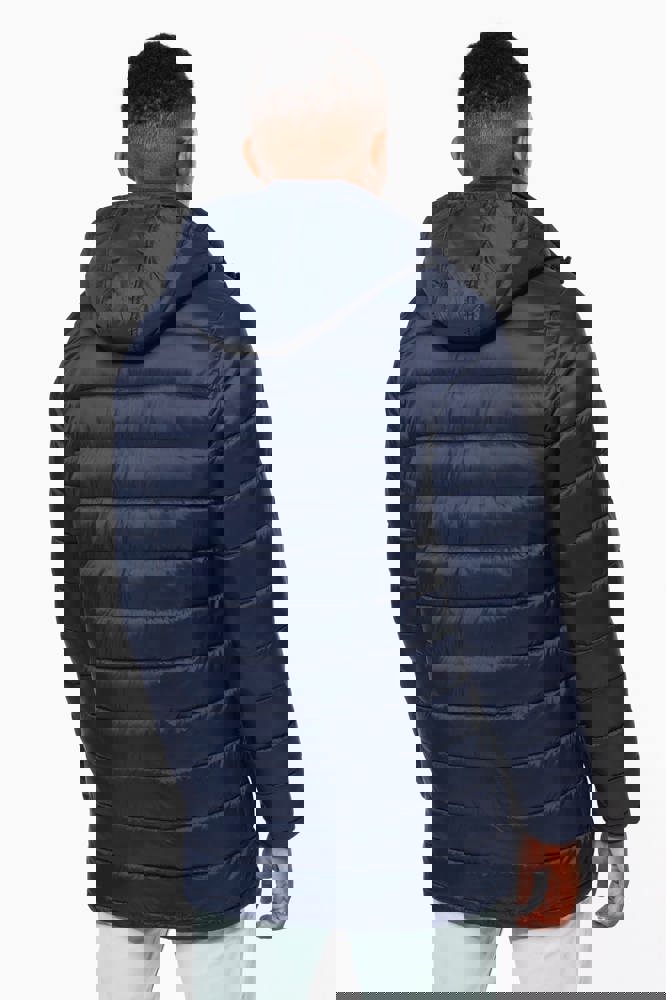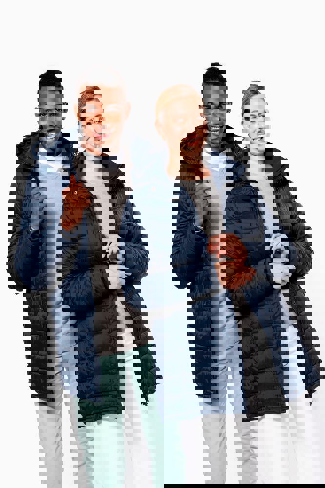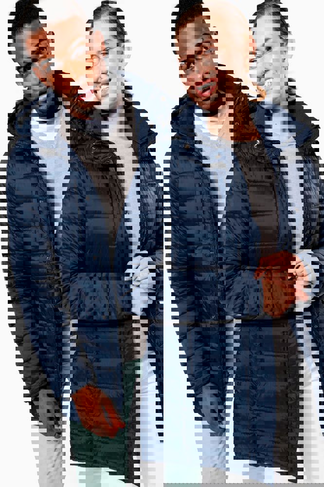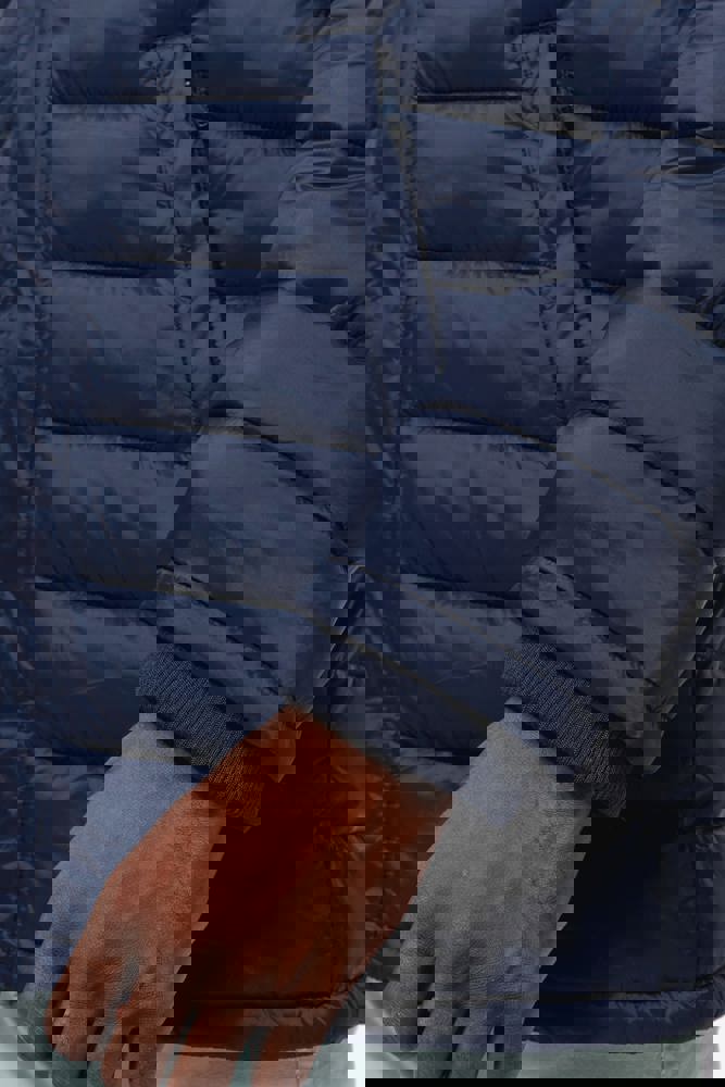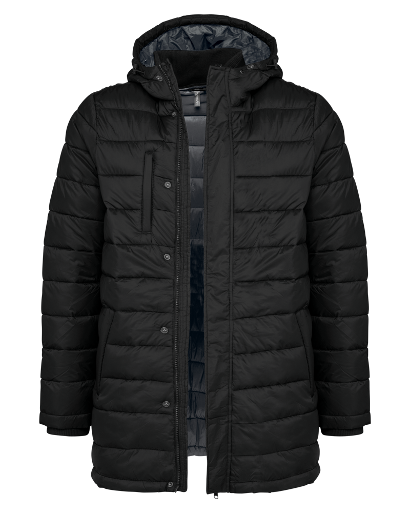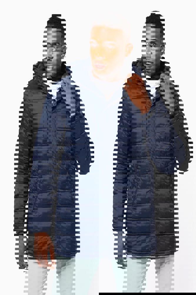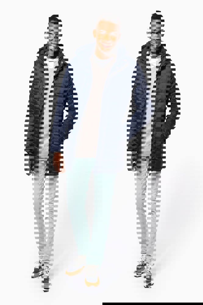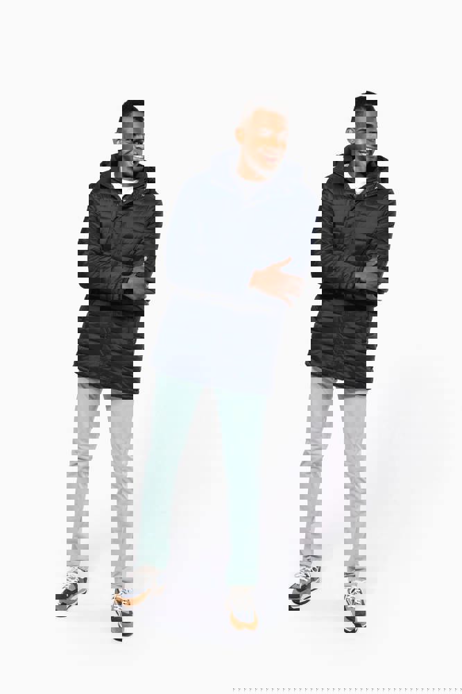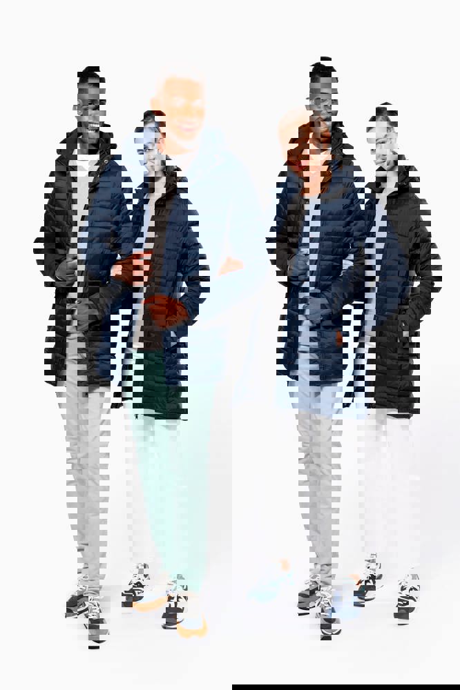 100% Polyamid. Polyester-Innenfutter. Warm und federleicht. 2 Fronttaschen und 1 Brusttasche mit Reißverschluss und Paspel. Durch Druckknopfleiste verdeckter Zwei-Wege-Reißverschluss. Strickbündchen an Hals und Ärmeln. Kapuzeninnenseite und Körper in Kontrastfarbe: Convoy Grey für Black. Kapuze und Körper Ton in Ton: Navy für Navy. Eingespritzte Wattierung: Das Gewicht kann je nach Bereich des Kleidungsstücks variieren. Das Gesamtgewicht dient nur zur Orientierung.
